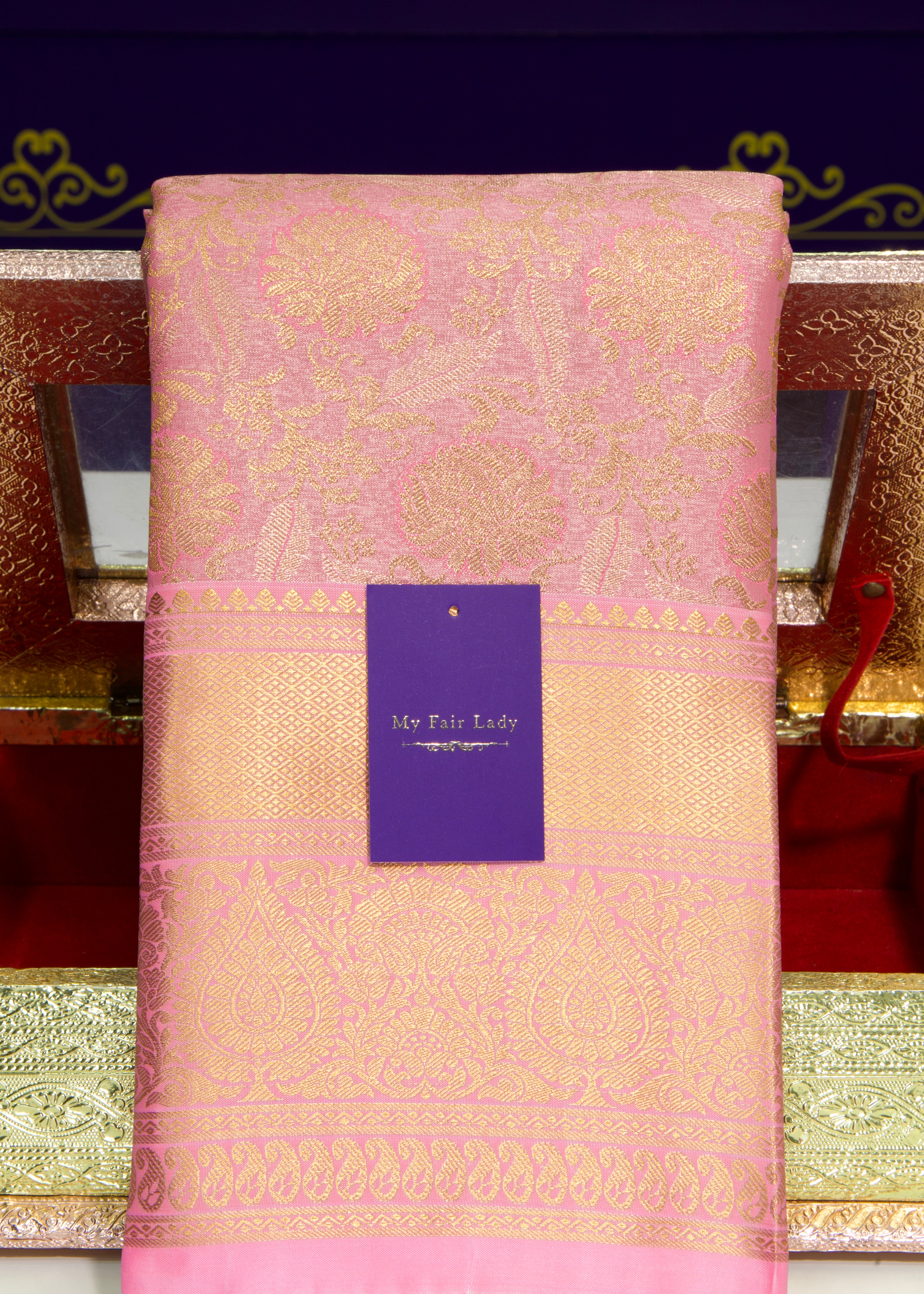Premium Brocade Semi-Silk Saree Light Pink Colour - [Code 725]