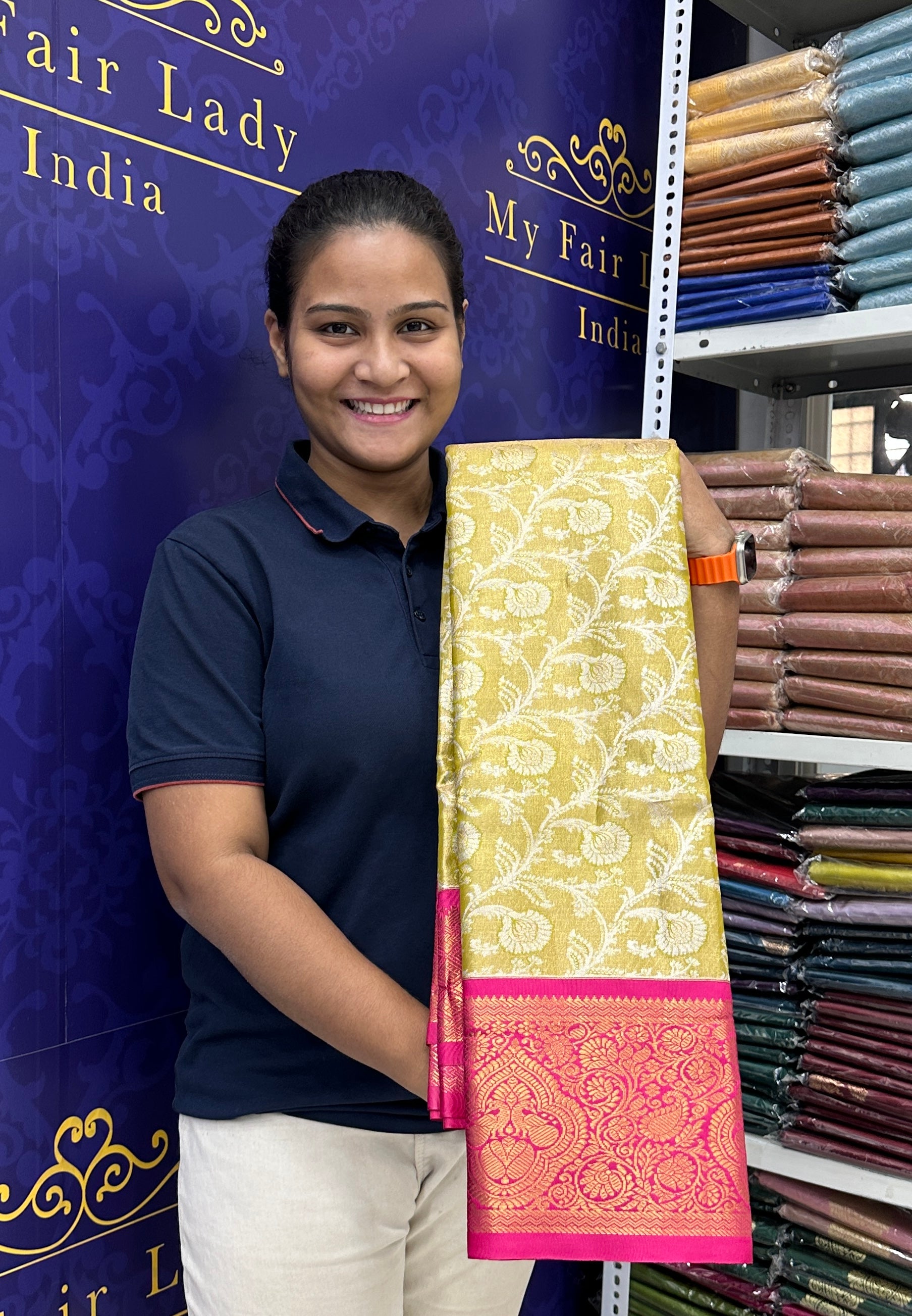Premium Butta Semi-Silk Saree Turmeric Yellow Colour - [Code 983]
