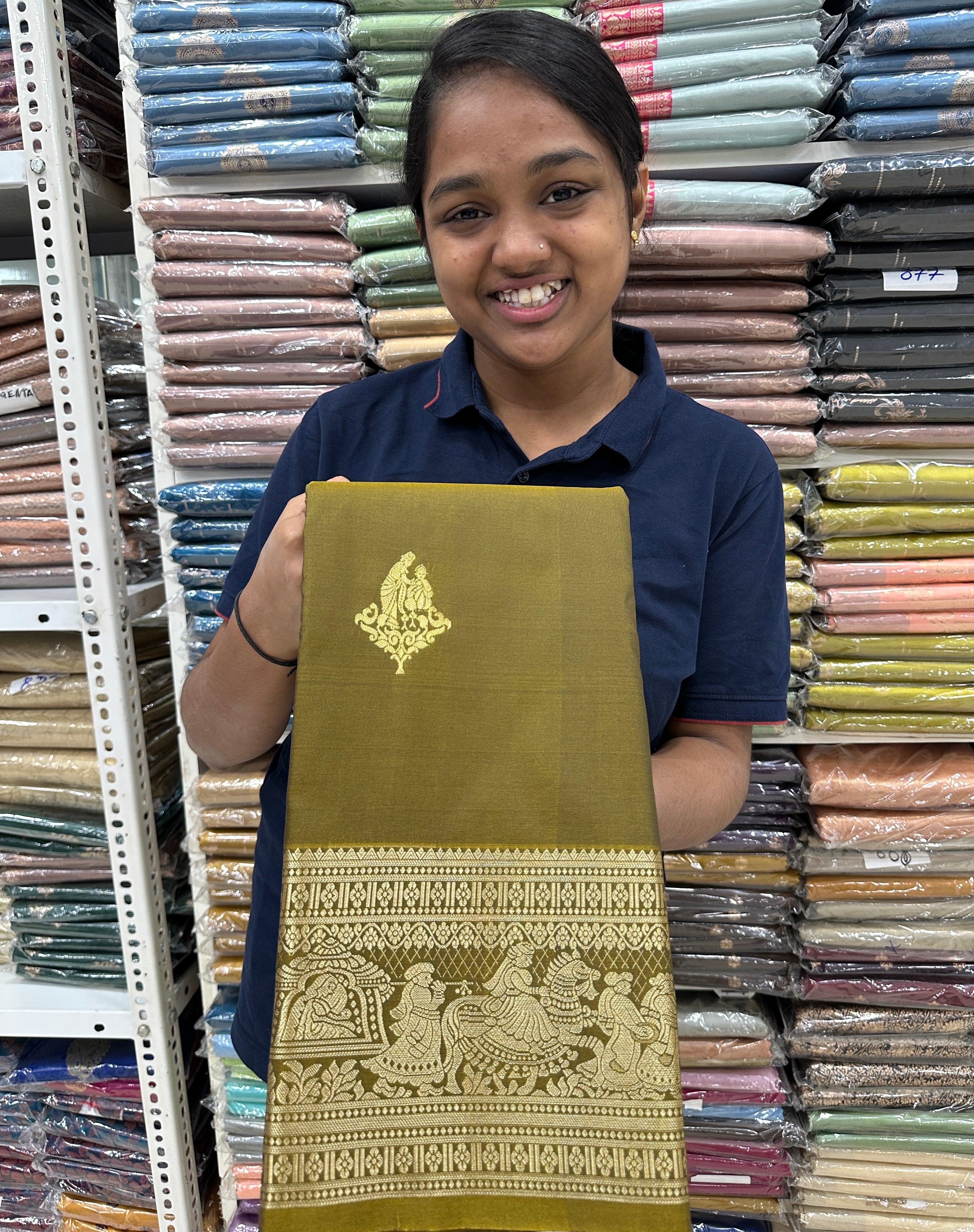 Premium Butta Semi-Silk Saree Olive Green Colour - [Code 750]