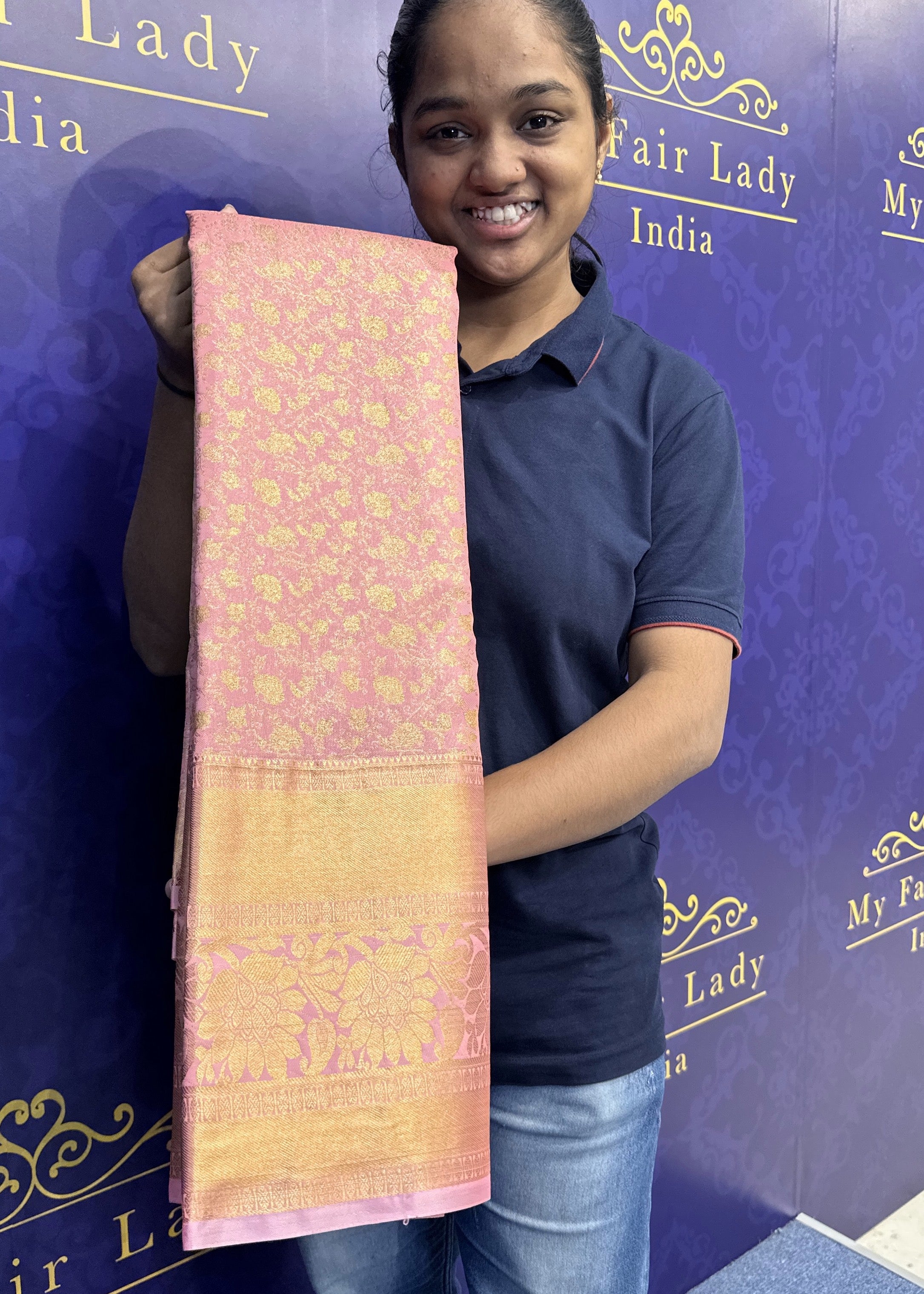 Premium Butta Semi-Silk Saree Blush Pink Colour - [Code 975]