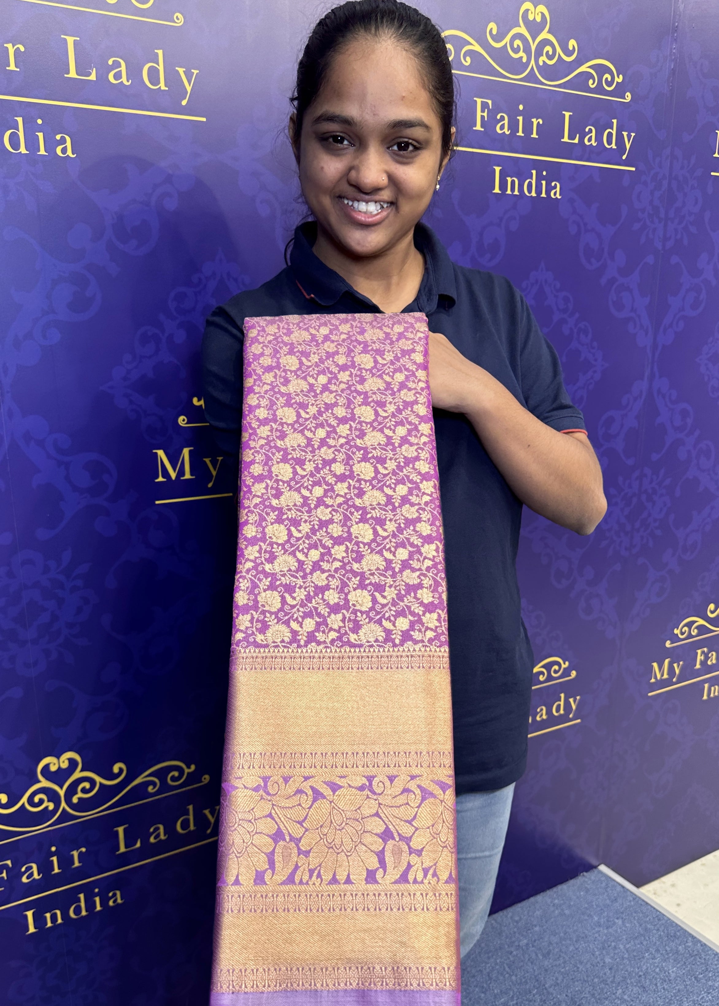 Premium Brocade Semi-Silk Saree Lavender Colour - [Code 926]