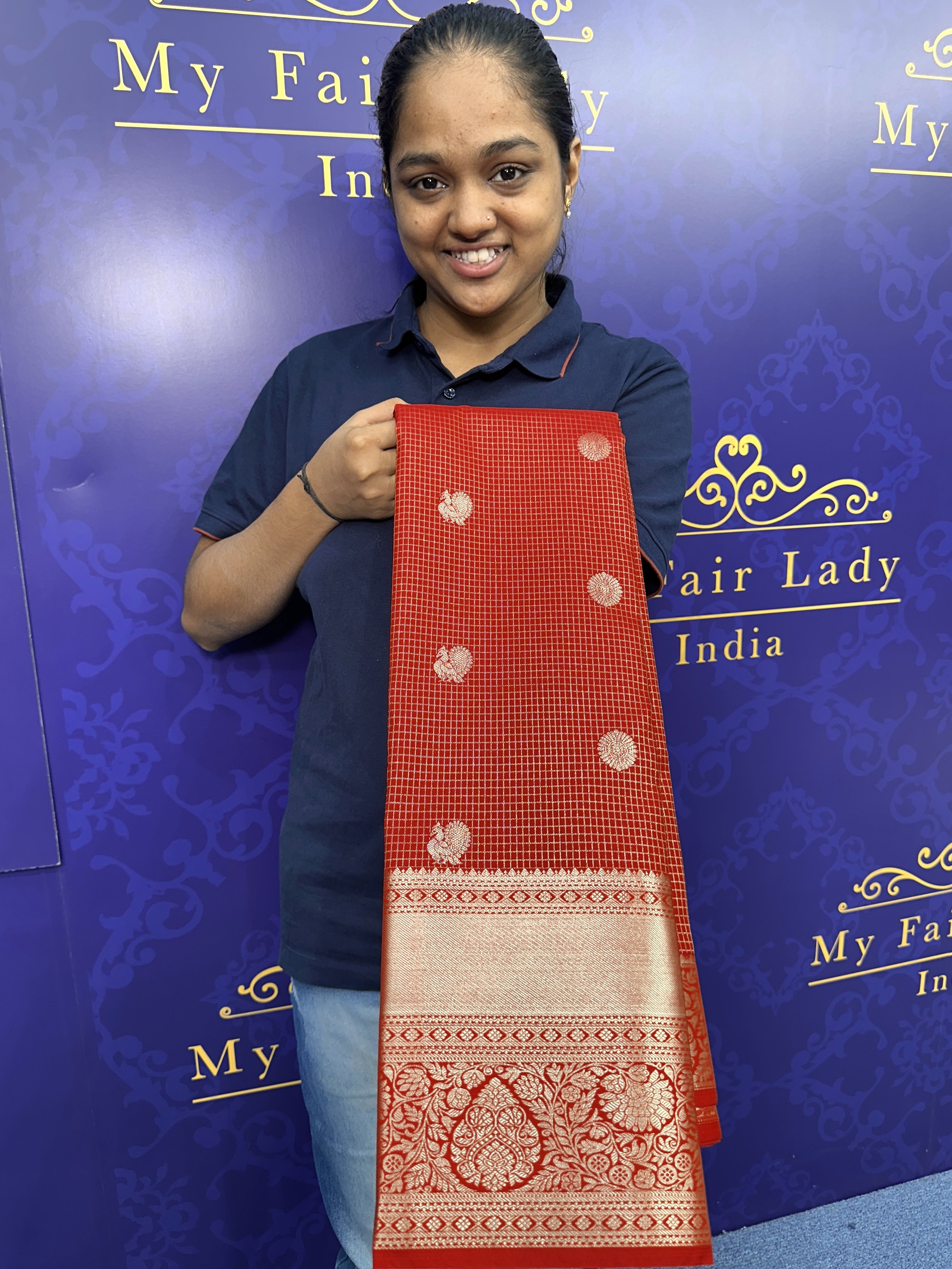 Premium Butta Semi-Silk Saree Red Colour - [Code 976]