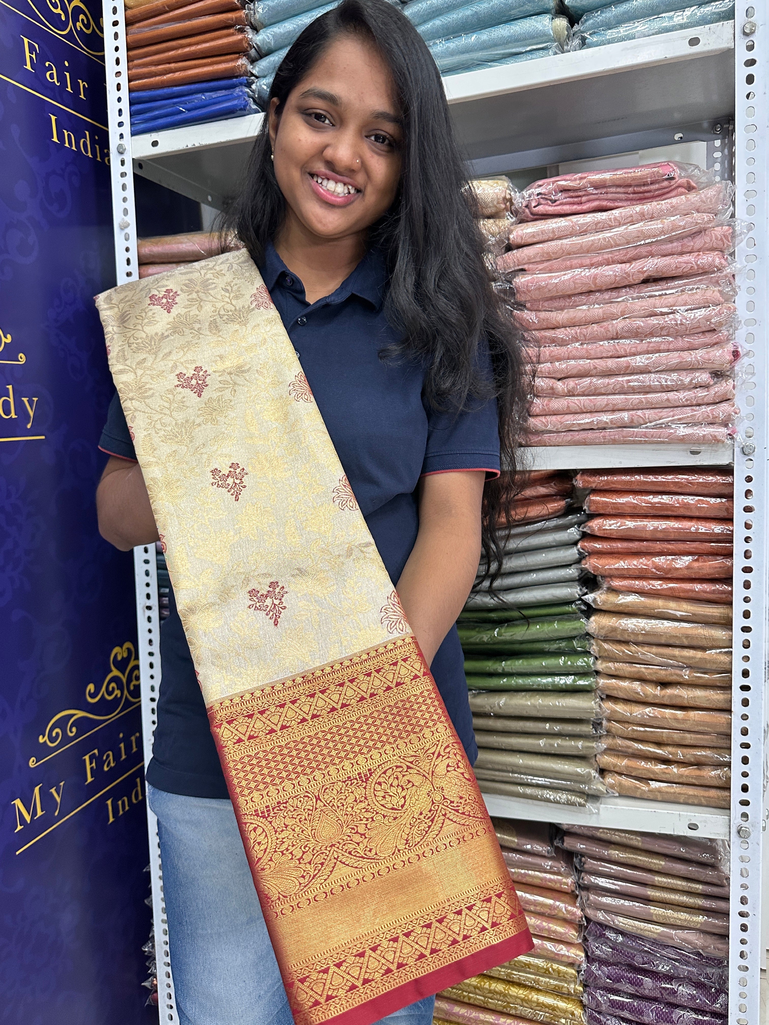 Premium Butta Soft Tissue Semi-Silk Saree Shiny Gold Colour - [Code 901]