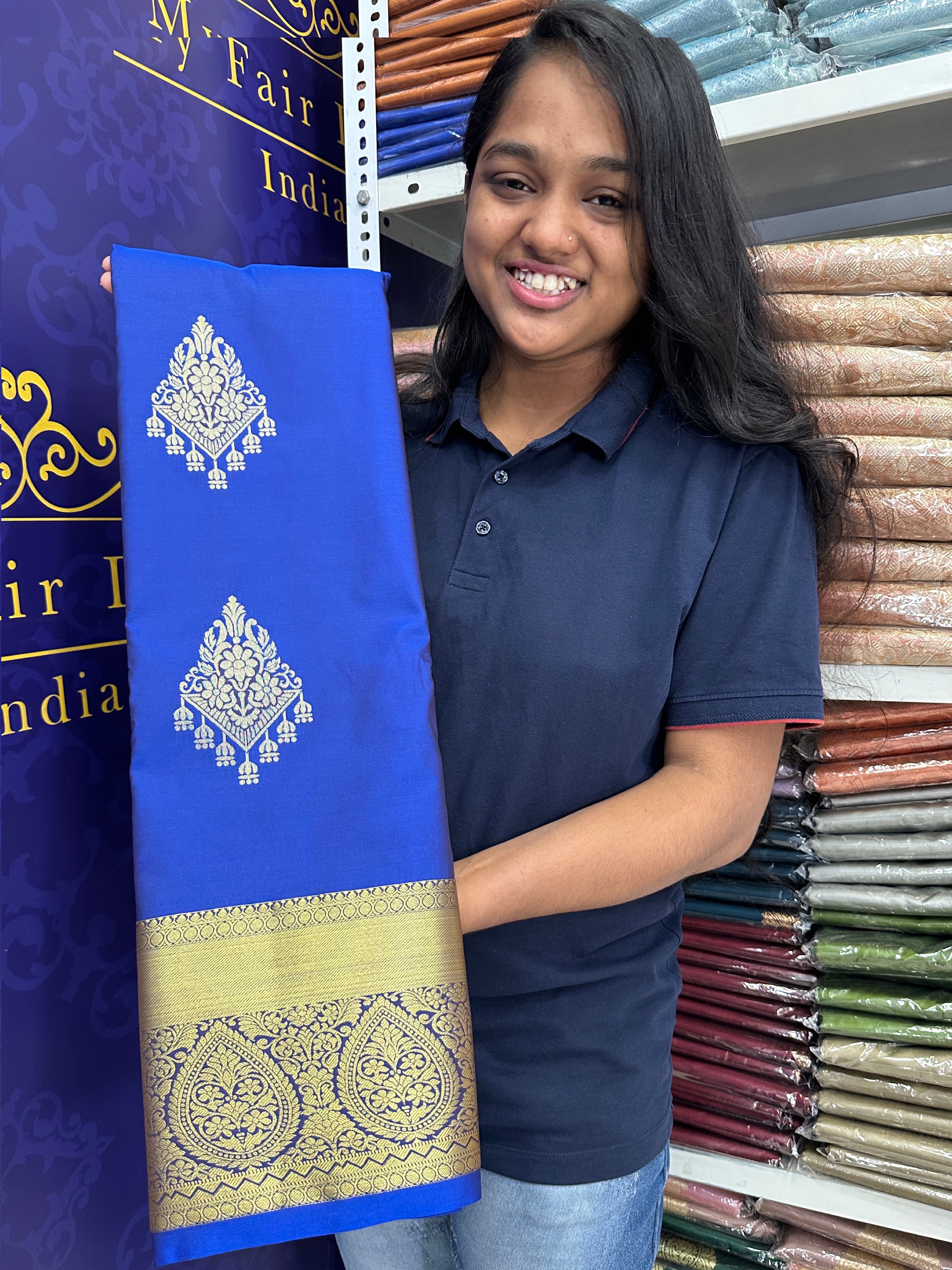 Premium Butta Semi-Silk Saree Bright Blue Colour - [Code 968]