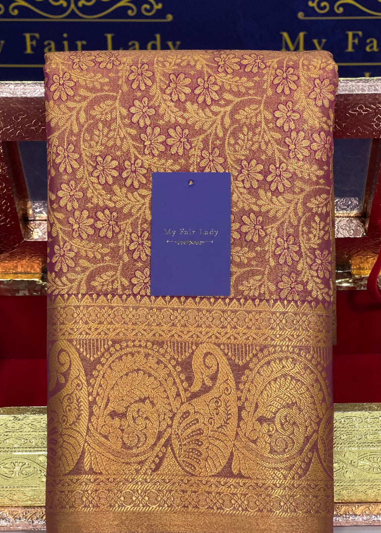 Brocade Semi-Silk Saree Bronze Purple Colour - [Code 1037]