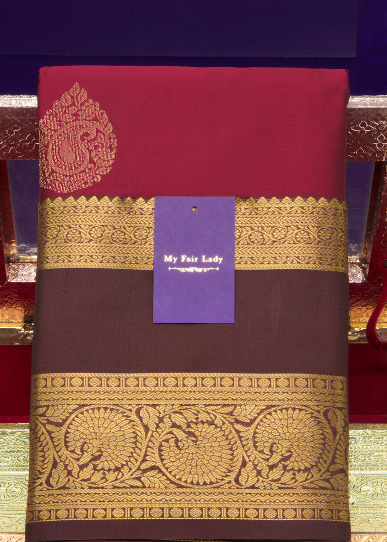 Premium Butta Semi-Silk Saree Coral Ruby Colour - [Code 984]