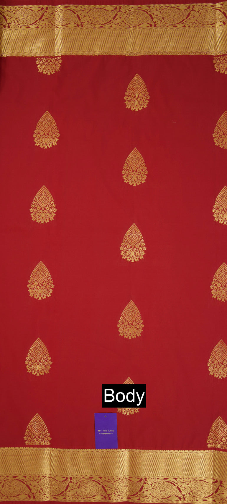 Premium Butta Semi-Silk Saree Deep Red Colour - [Code 704]