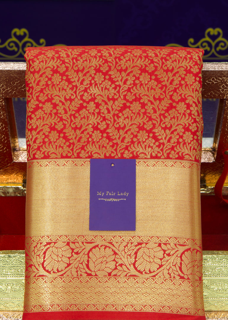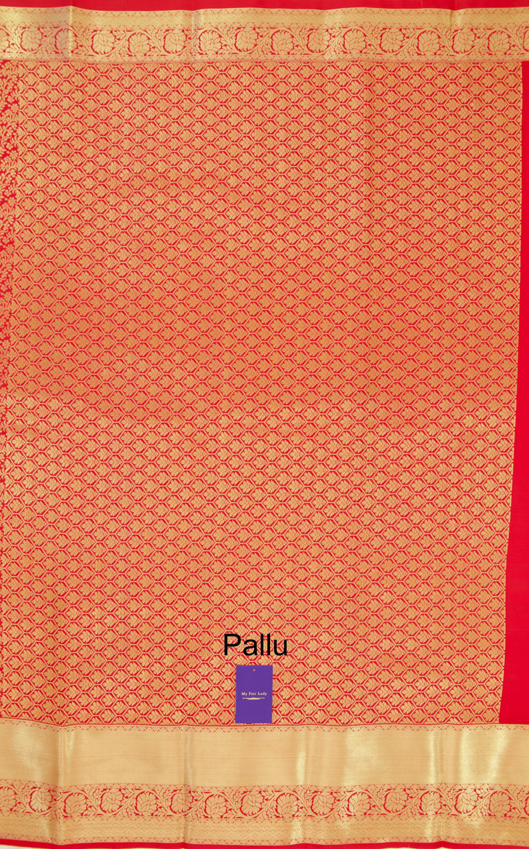 Premium Butta Semi-Silk Saree Rose Red Colour - [Code 704]