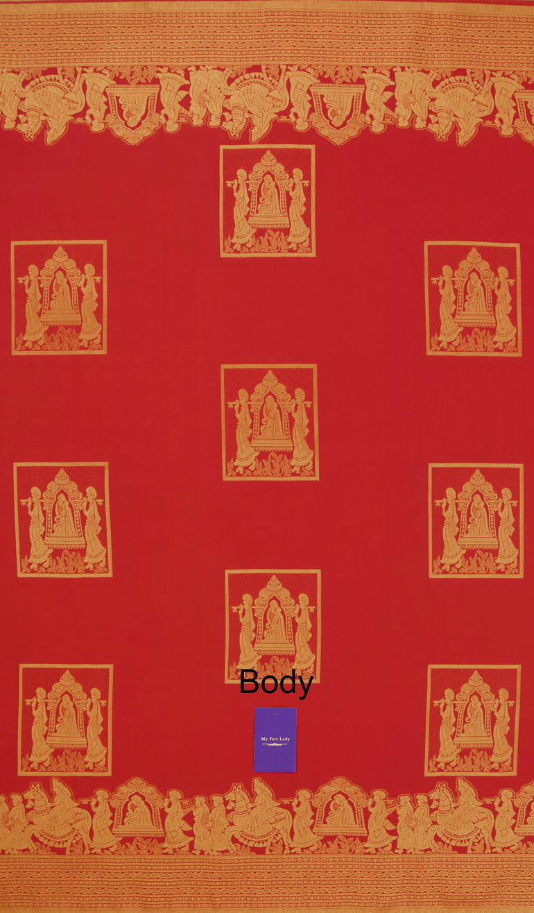 Premium Butta Semi-Silk Saree Royal Red Colour - [Code 704]