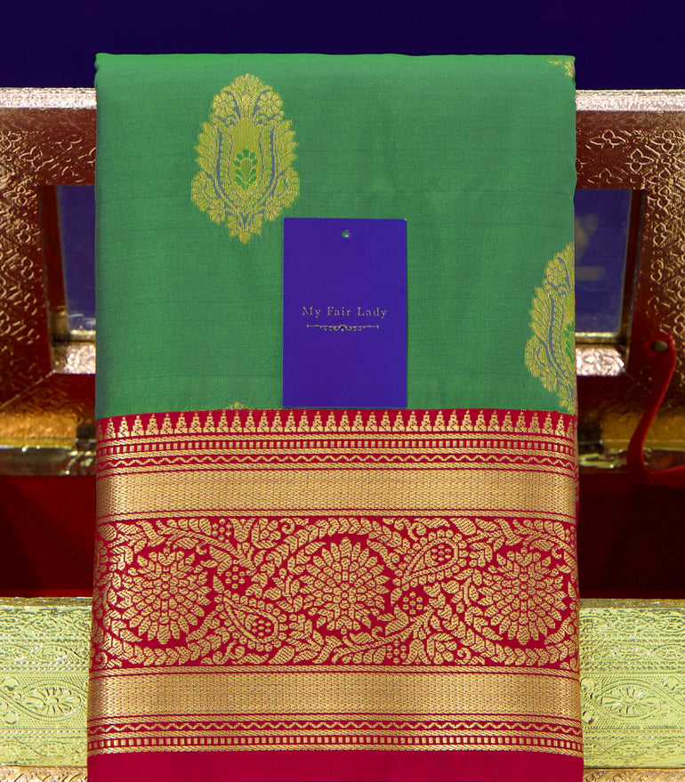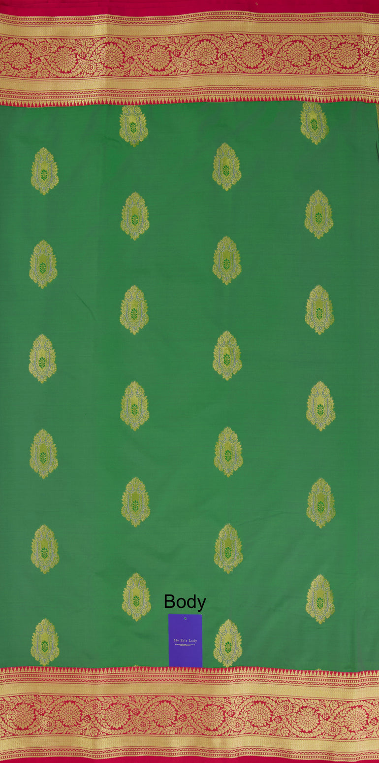 Premium Butta Semi-Silk Saree Green X Crimson Colour - [Code 706]