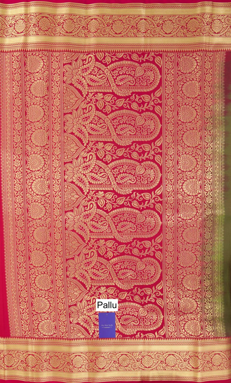 Saree Colour: Green X Crimson Red (Dual Tone)