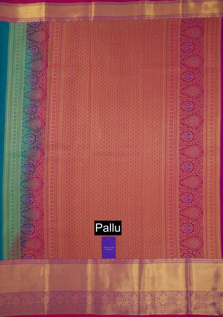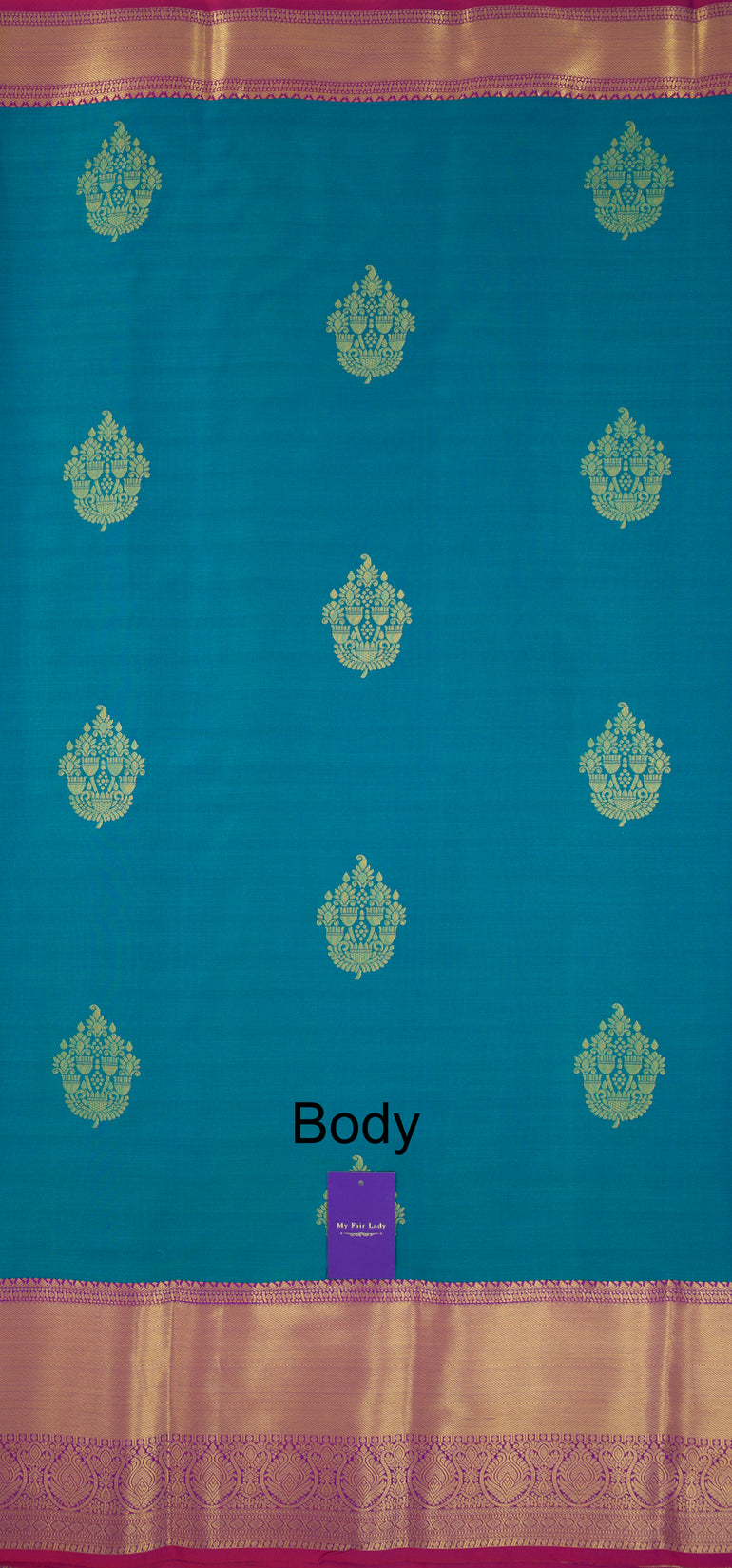 Premium Butta Semi-Silk Saree Peacock Blue Colour - [Code 967]