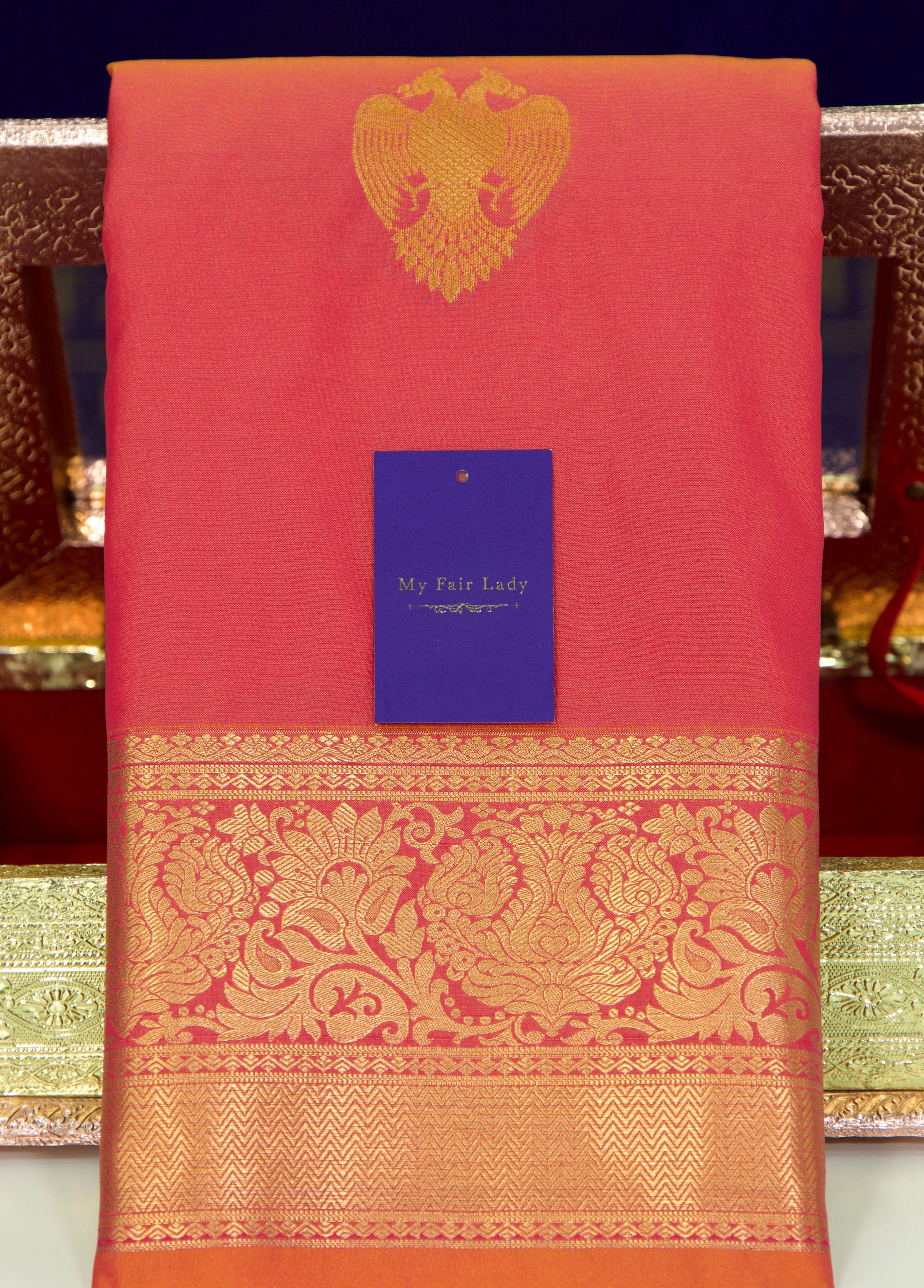 Premium Butta Semi-Silk Saree Pinkish Orange Colour - [Code 965]