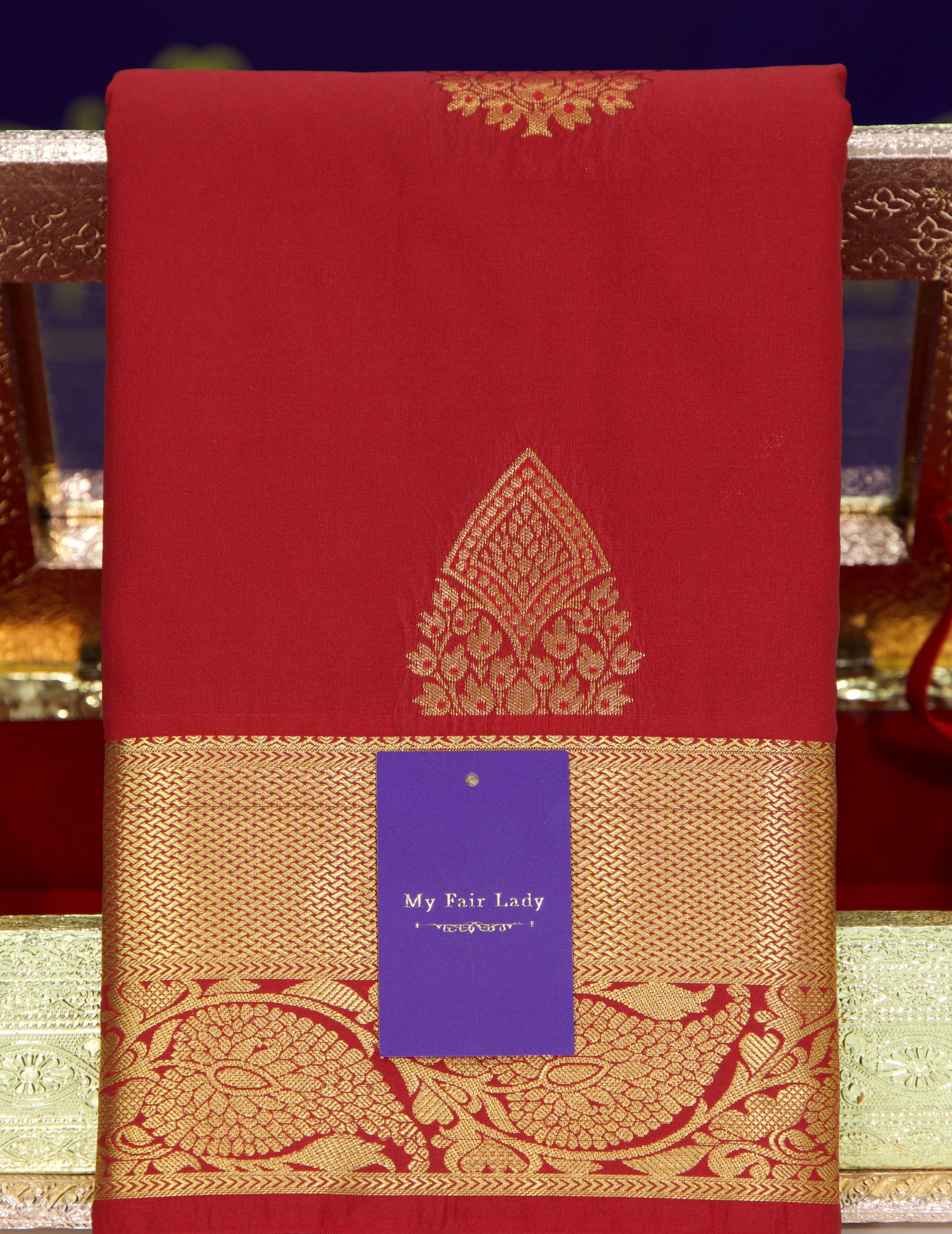 Premium Butta Semi-Silk Saree Deep Red Colour - [Code 704]