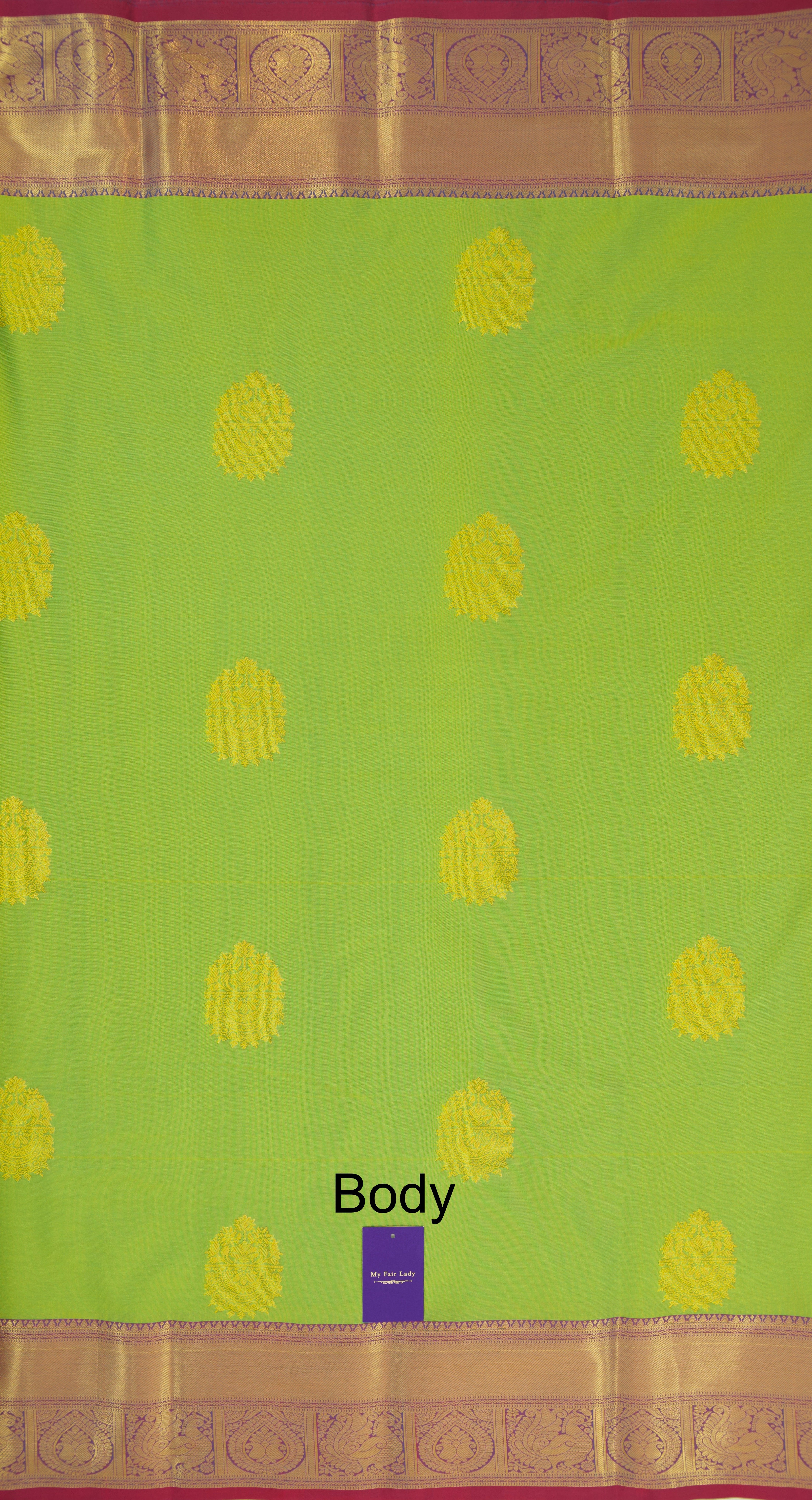 Premium Butta Semi-Silk Saree Yellow Green Colour - [Code 961]