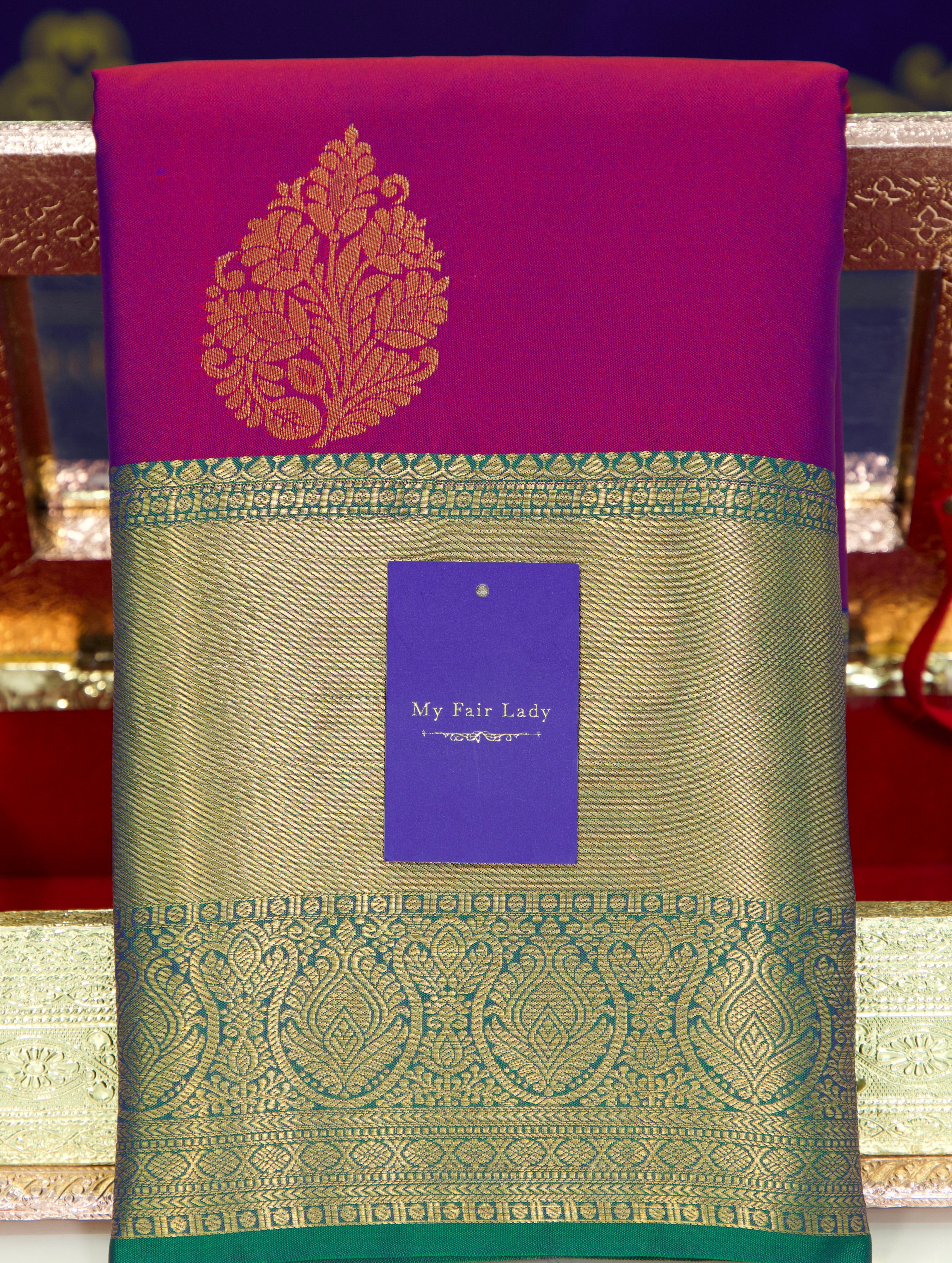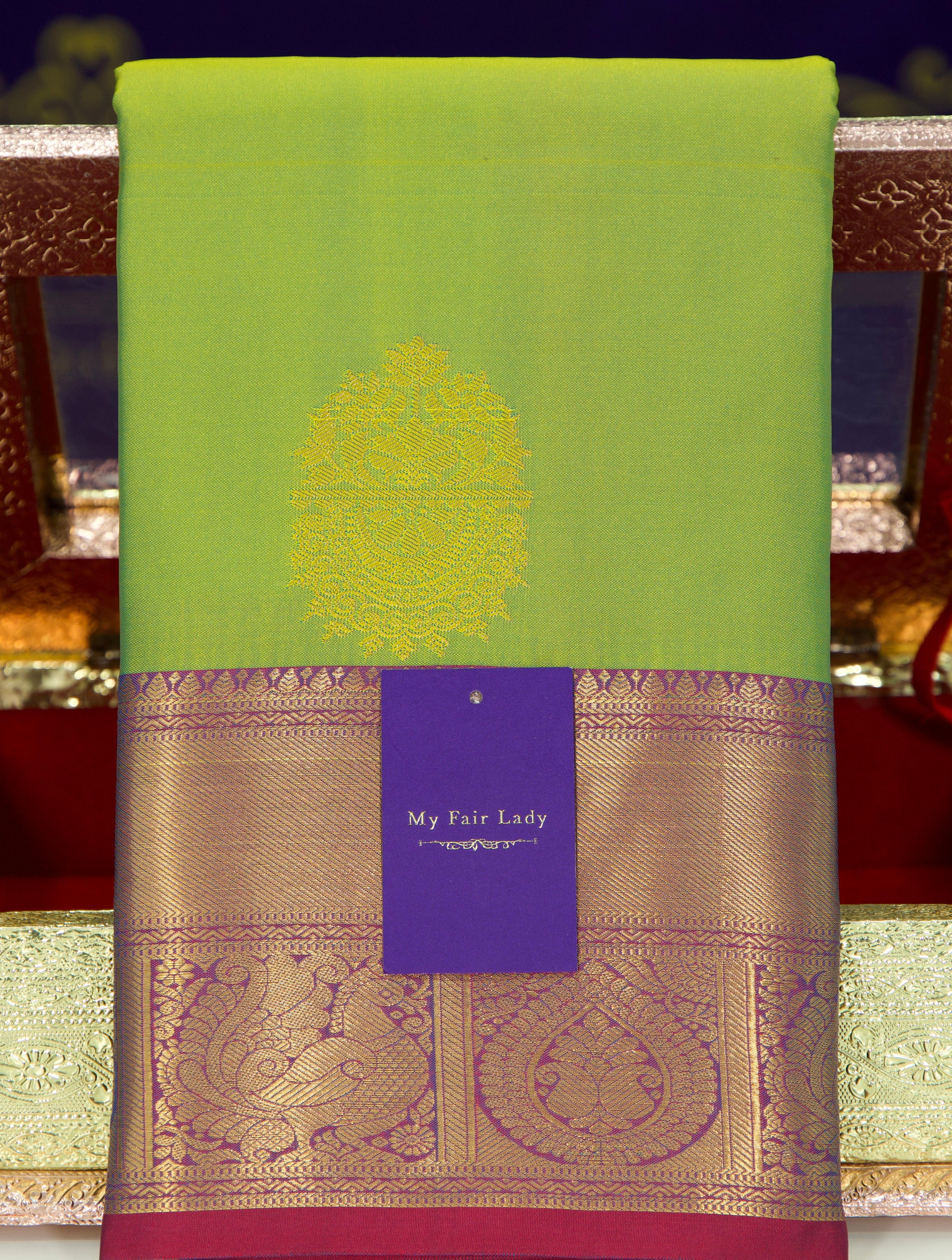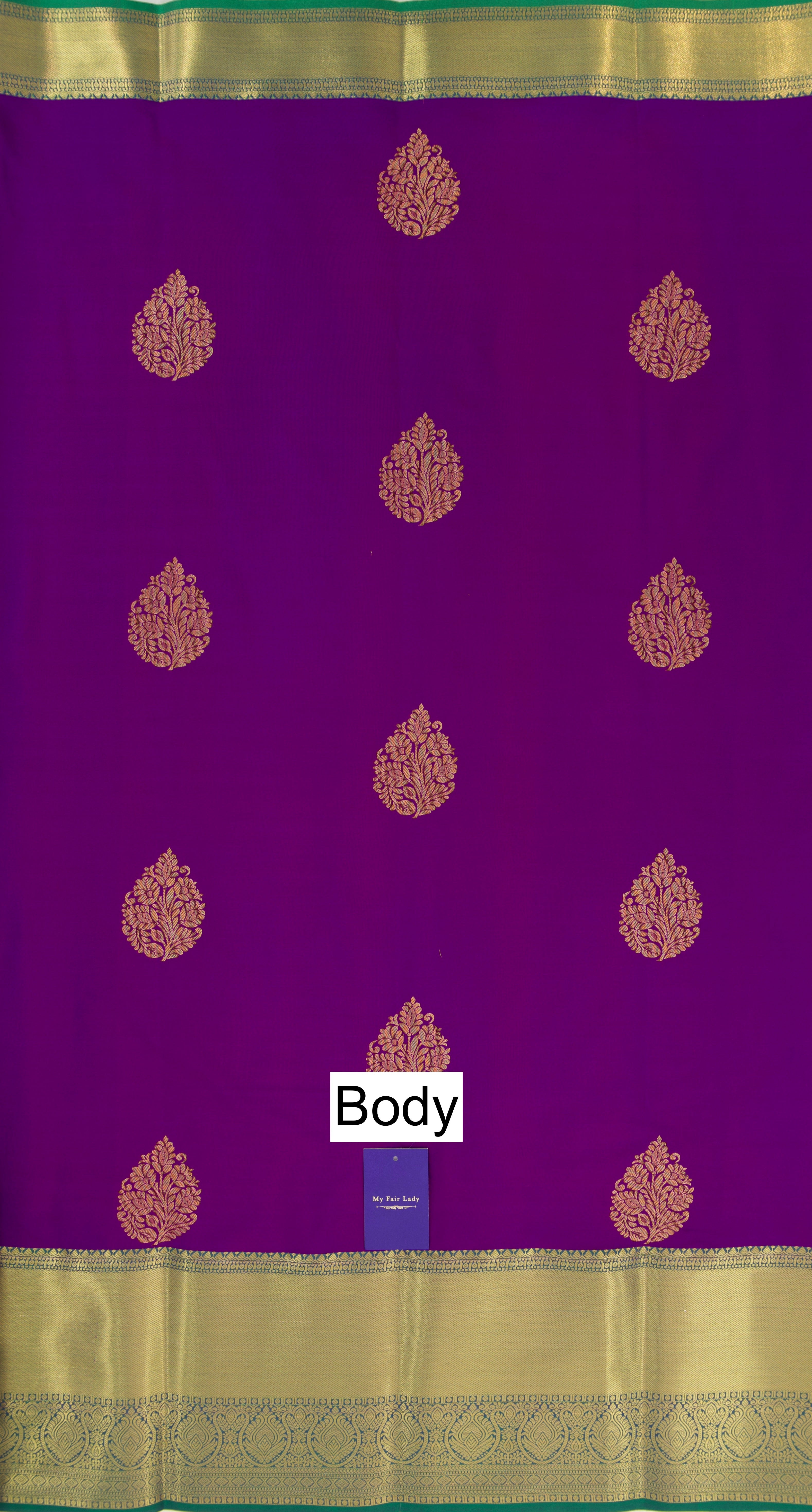 Premium Butta Semi-Silk Saree Green X Purple Colour - [Code 960]