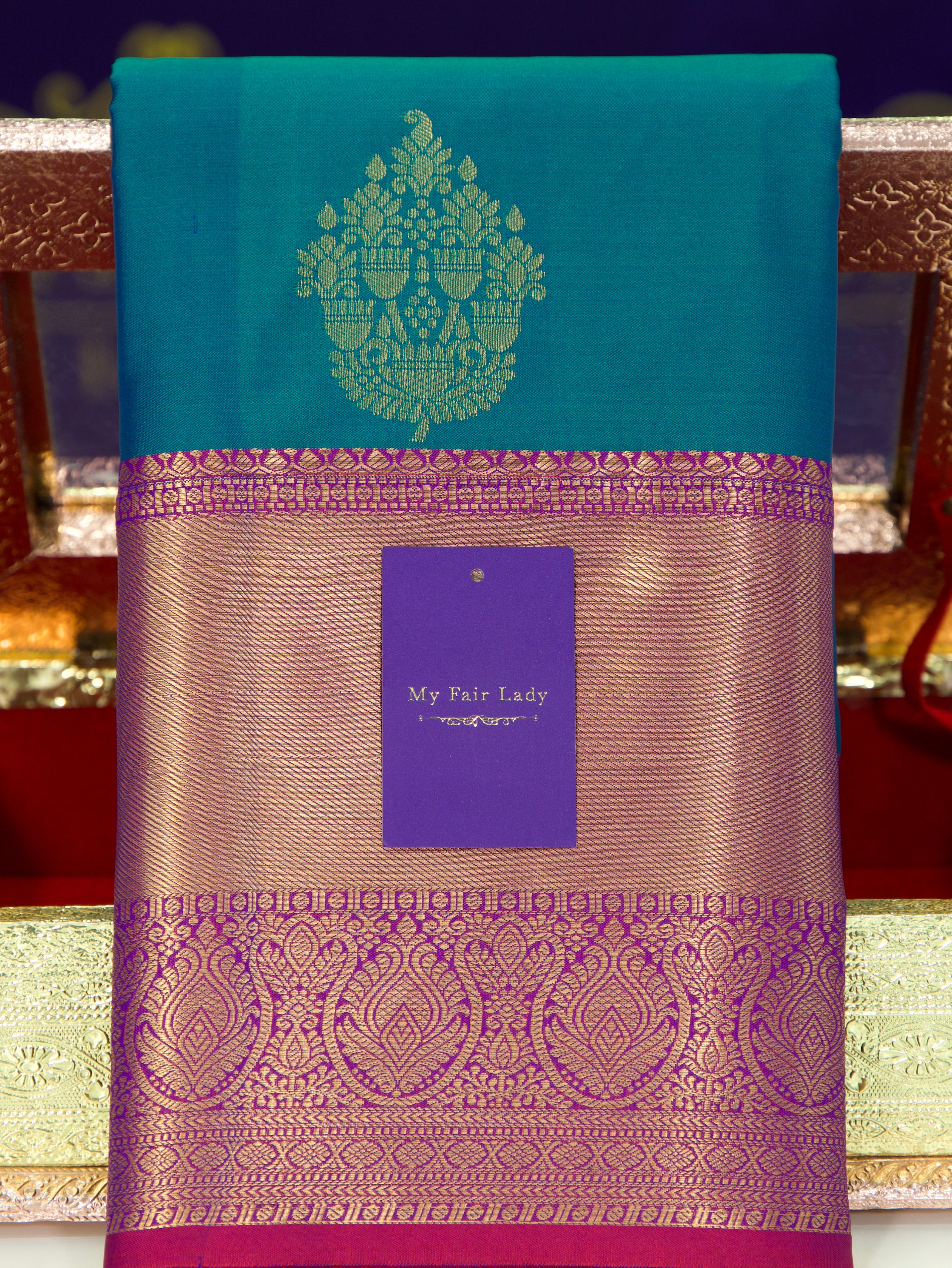 Premium Butta Semi-Silk Saree Peacock Blue Colour - [Code 967]
