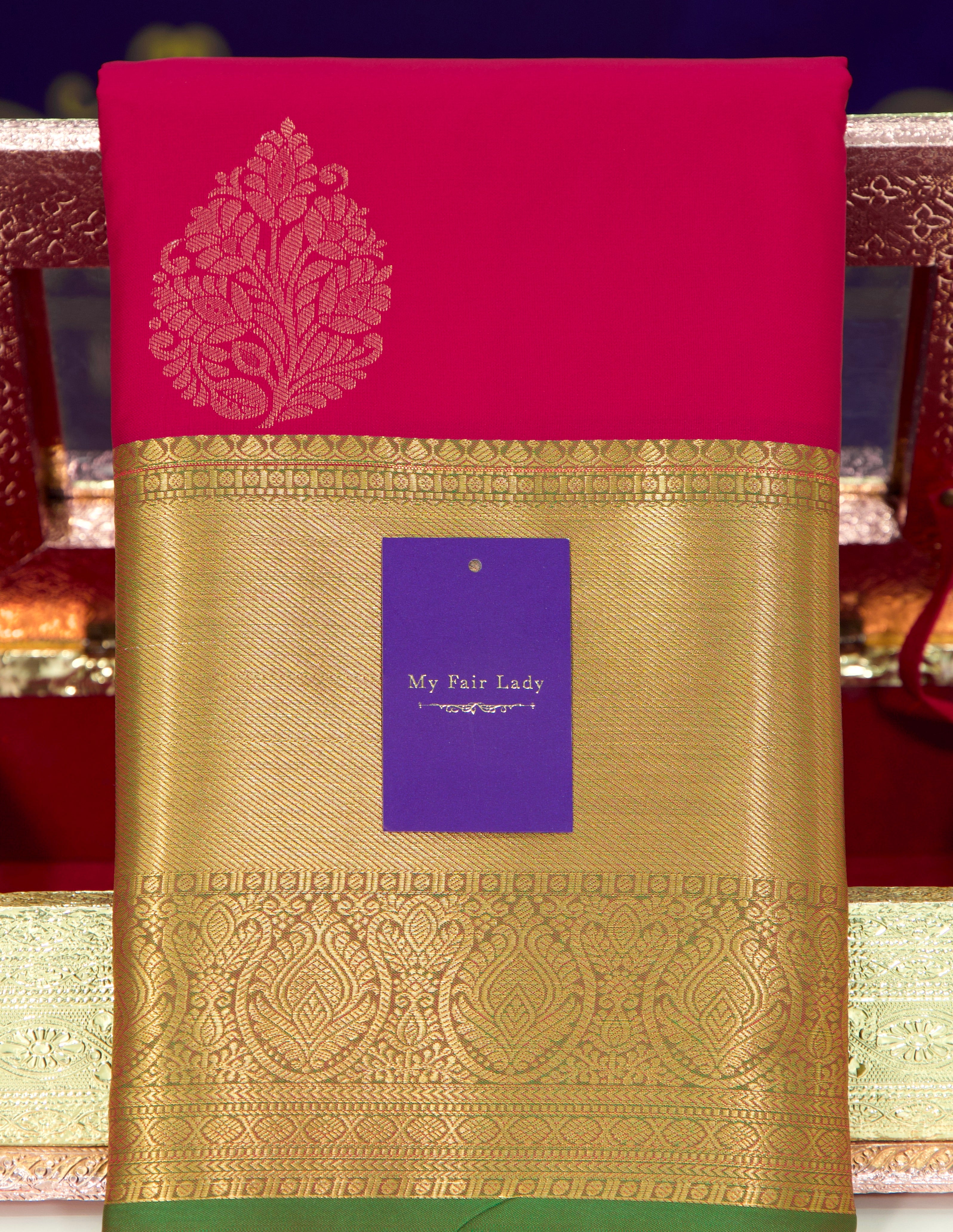 Premium Butta Semi-Silk Saree Crimson Pink Colour - [Code 962]