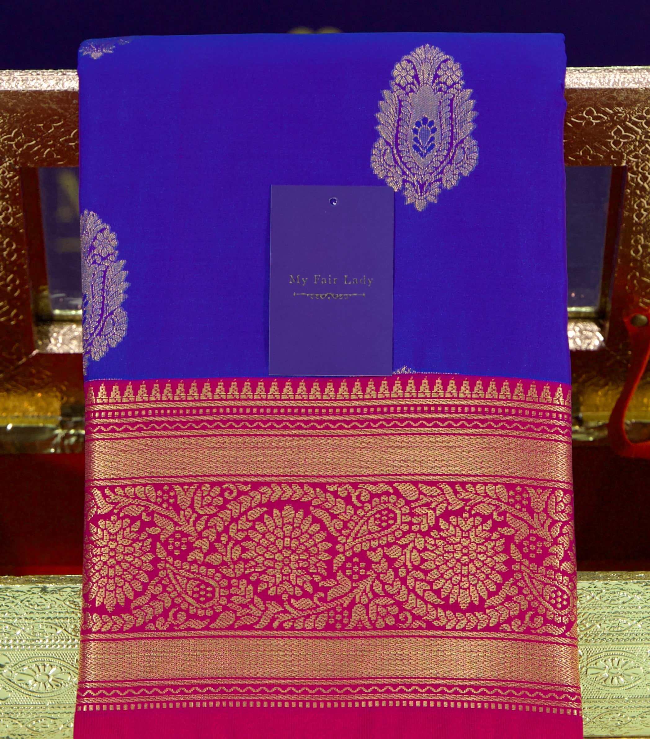 Premium Butta Semi-Silk Saree Ultramarine Blue Colour - [Code 706]