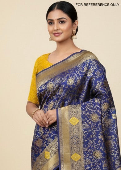 Brocade Semi-Silk Saree Blue Colour - [Code 1016]