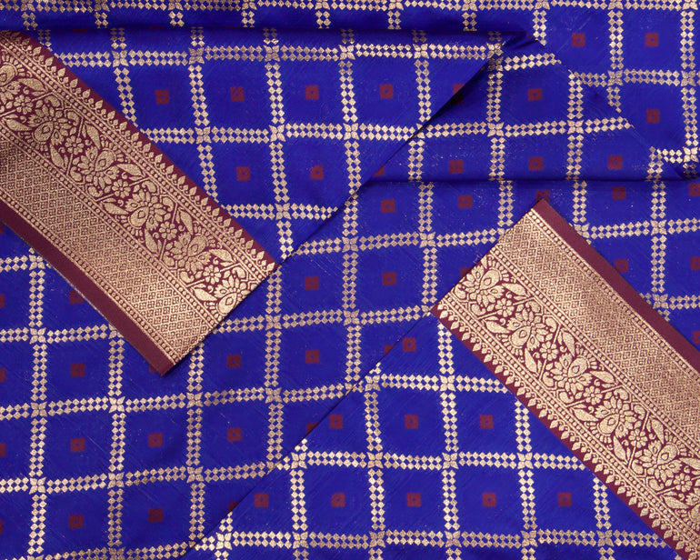 Brocade Semi-Silk Saree Blue X Purple Colour - [Code 1003]