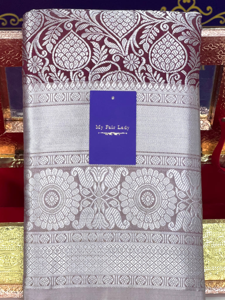 Brocade Semi-Silk Saree Chocolate Brown Colour - [Code 669]