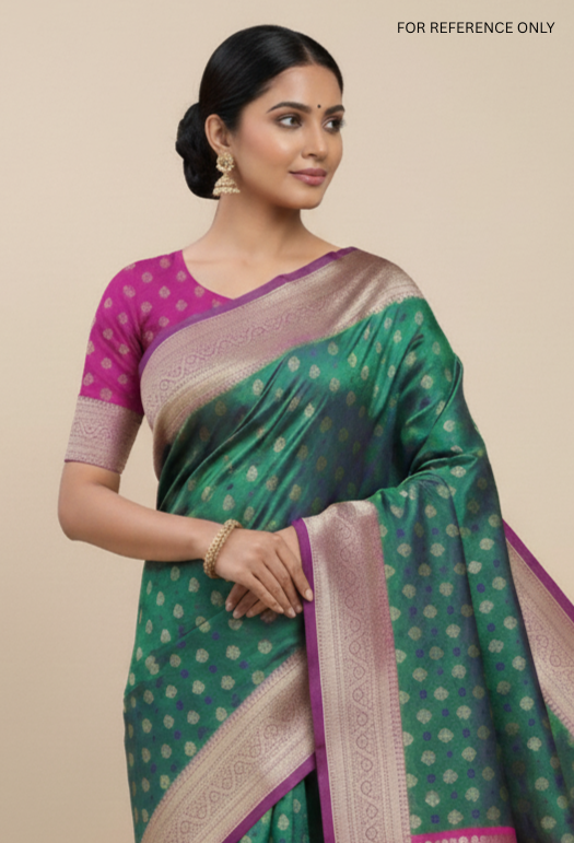 Brocade Semi-Silk Saree Deep Green X Pink Colour - [Code 635]