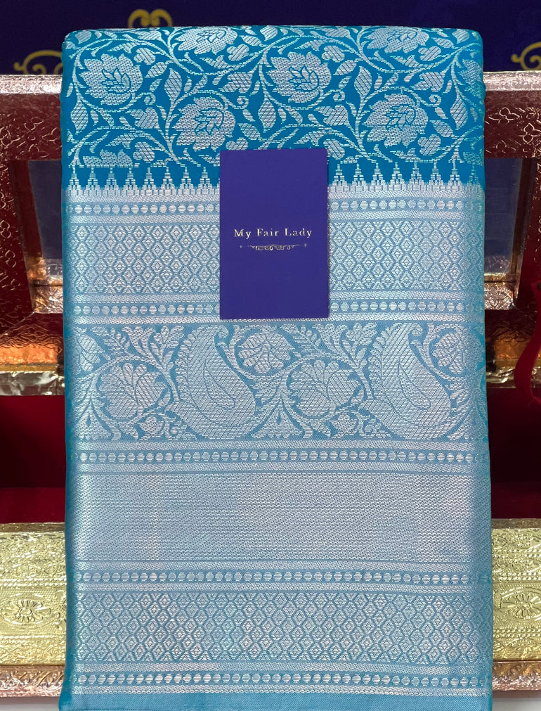 Brocade Semi-Silk Saree Aqua Blue Colour - [Code 672]