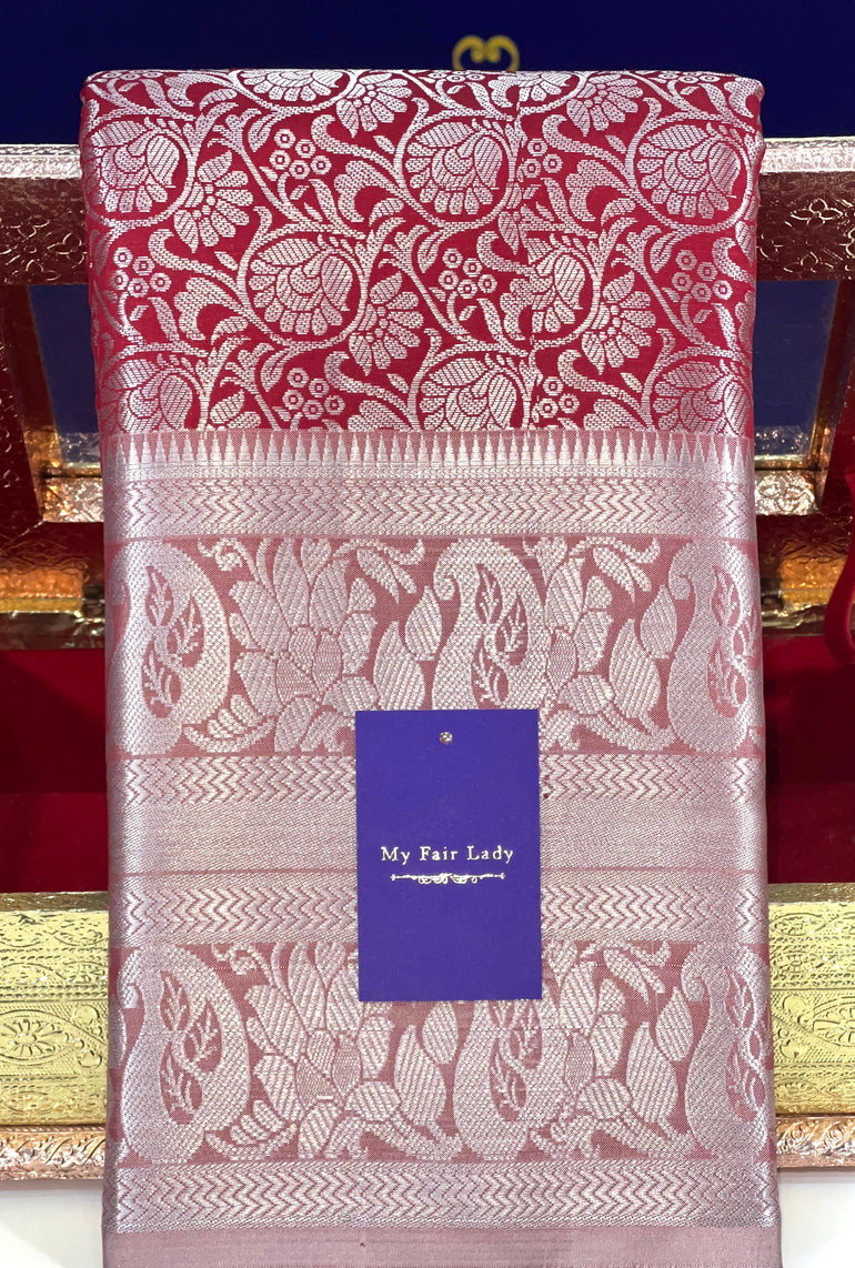Brocade Semi-Silk Saree Rich Burgundy Colour - [Code 676]