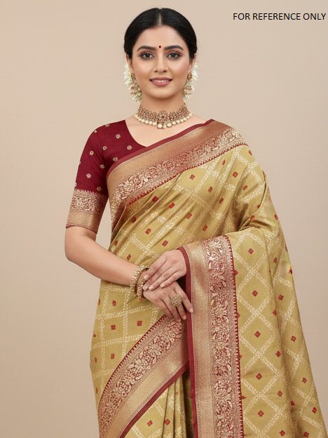 Brocade Semi-Silk Saree Sand X Burgundy Colour - [Code 1003]