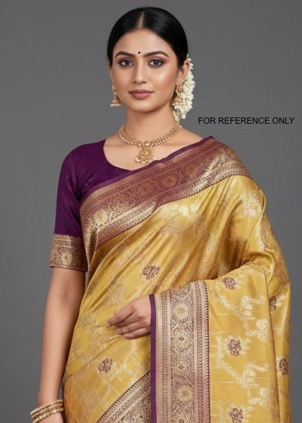 Brocade Semi-Silk Saree Sandal X Purple Colour - [Code 877]