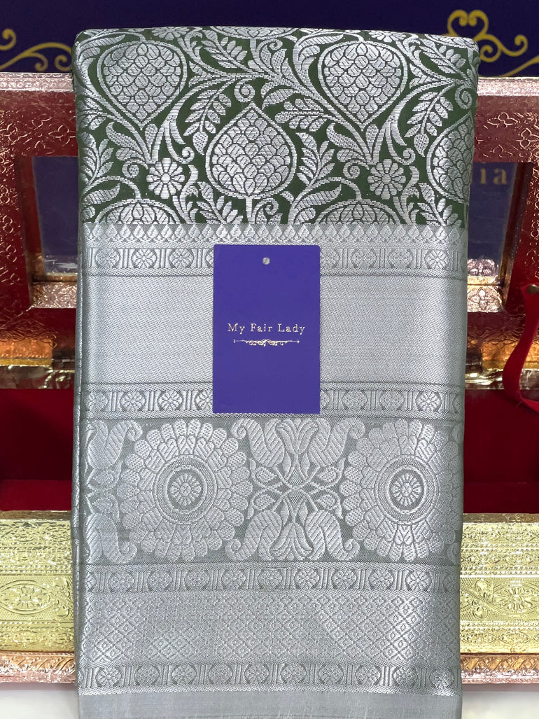 Brocade Semi-Silk Saree Tropical Green Colour - [Code 669]