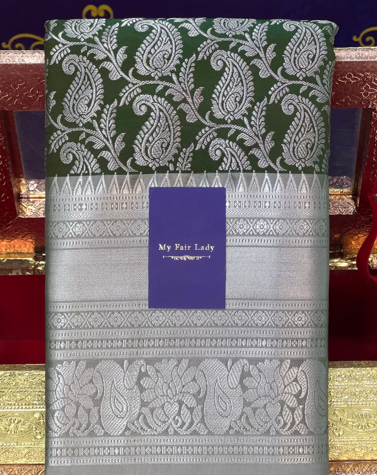Brocade Semi-Silk Saree Dark Green Colour - [Code 673]