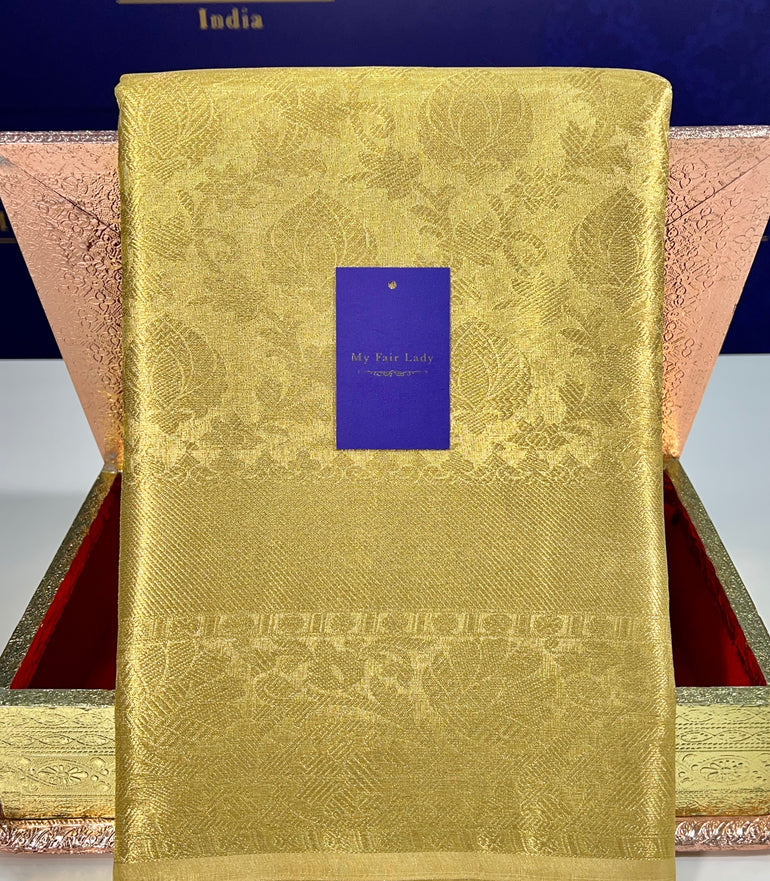 Brocade Tissue Semi-Silk Saree Vibrant Gold Color - [Code 1026]