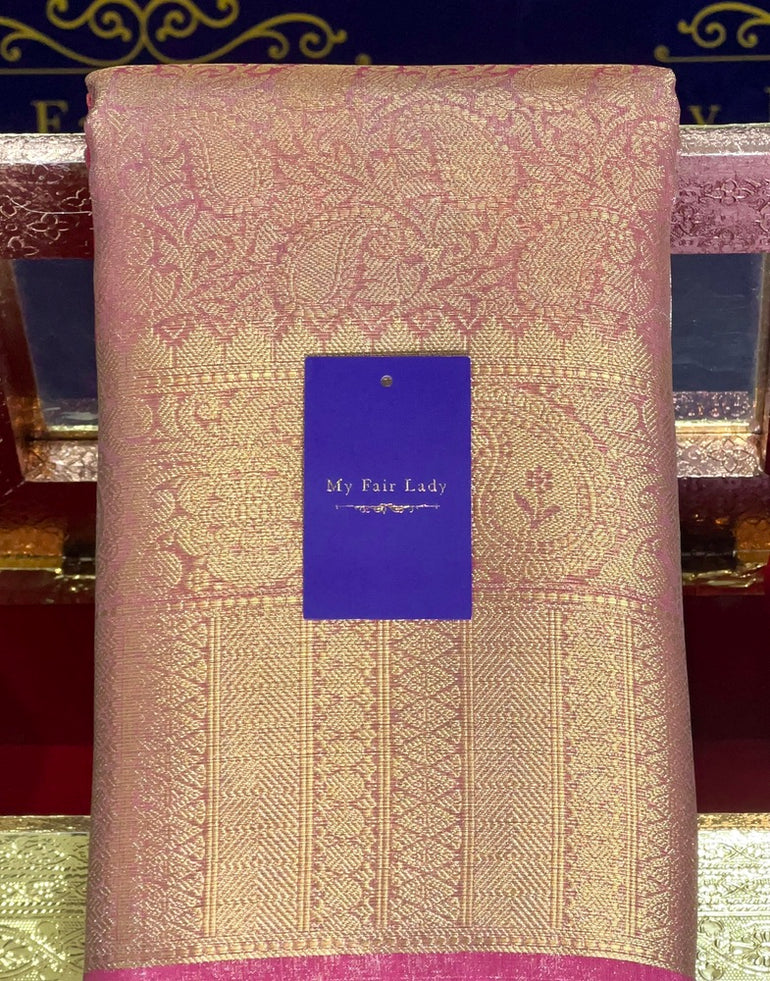 Brocade Tissue Semi-Silk Saree Rose Gold Colour - [Code 243]