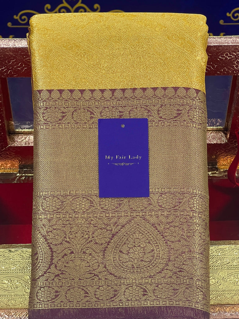Brocade Tissue Semi-Silk Saree Yellow Colour - [Code 884]