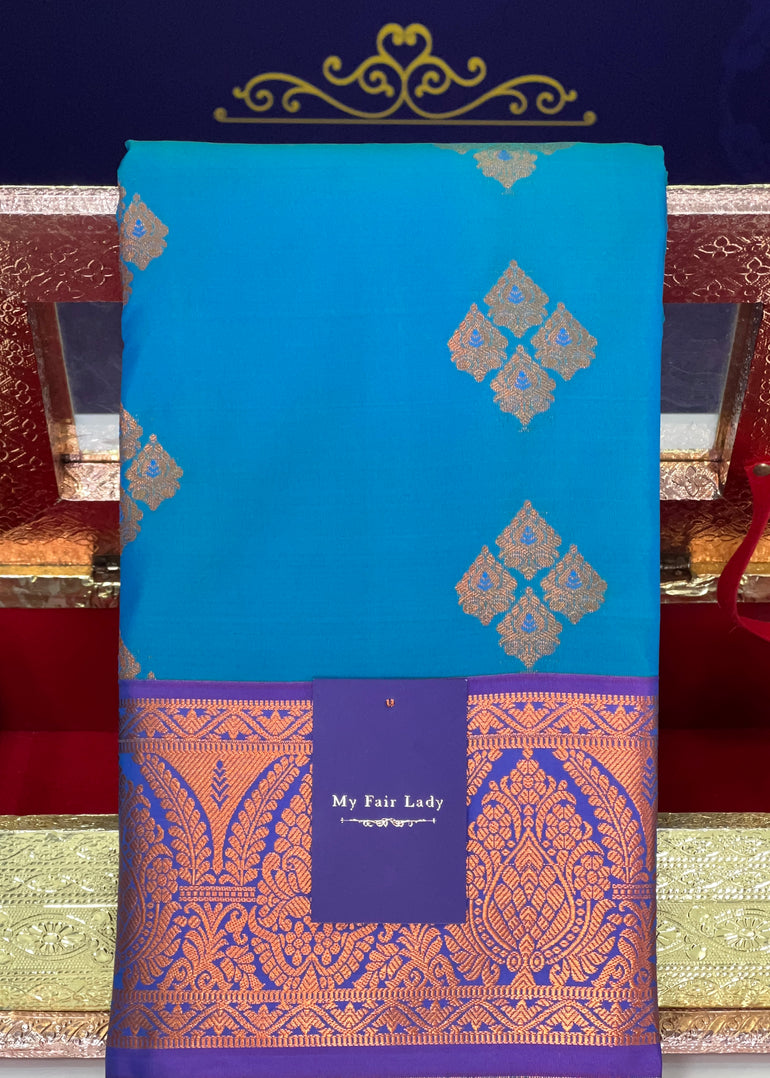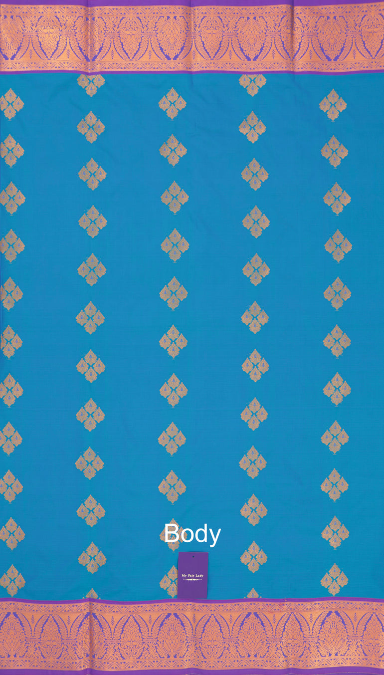 Butta Semi-Silk Saree Blue Colour - [Code 1043]