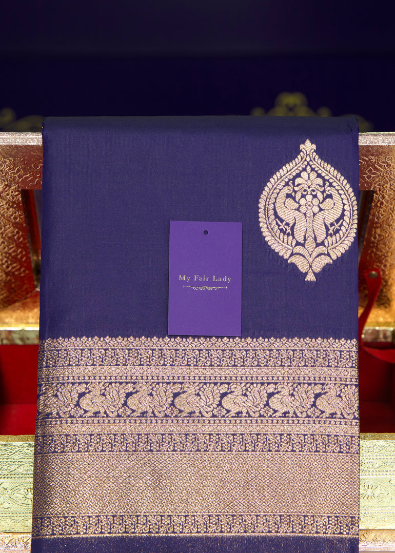Butta Semi-Silk Saree Dark Blue Colour - [Code 1056]