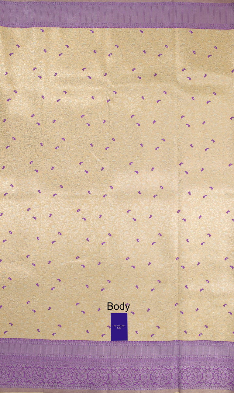 Brocade Semi-Silk Saree Cream Colour - [Code 1006]
