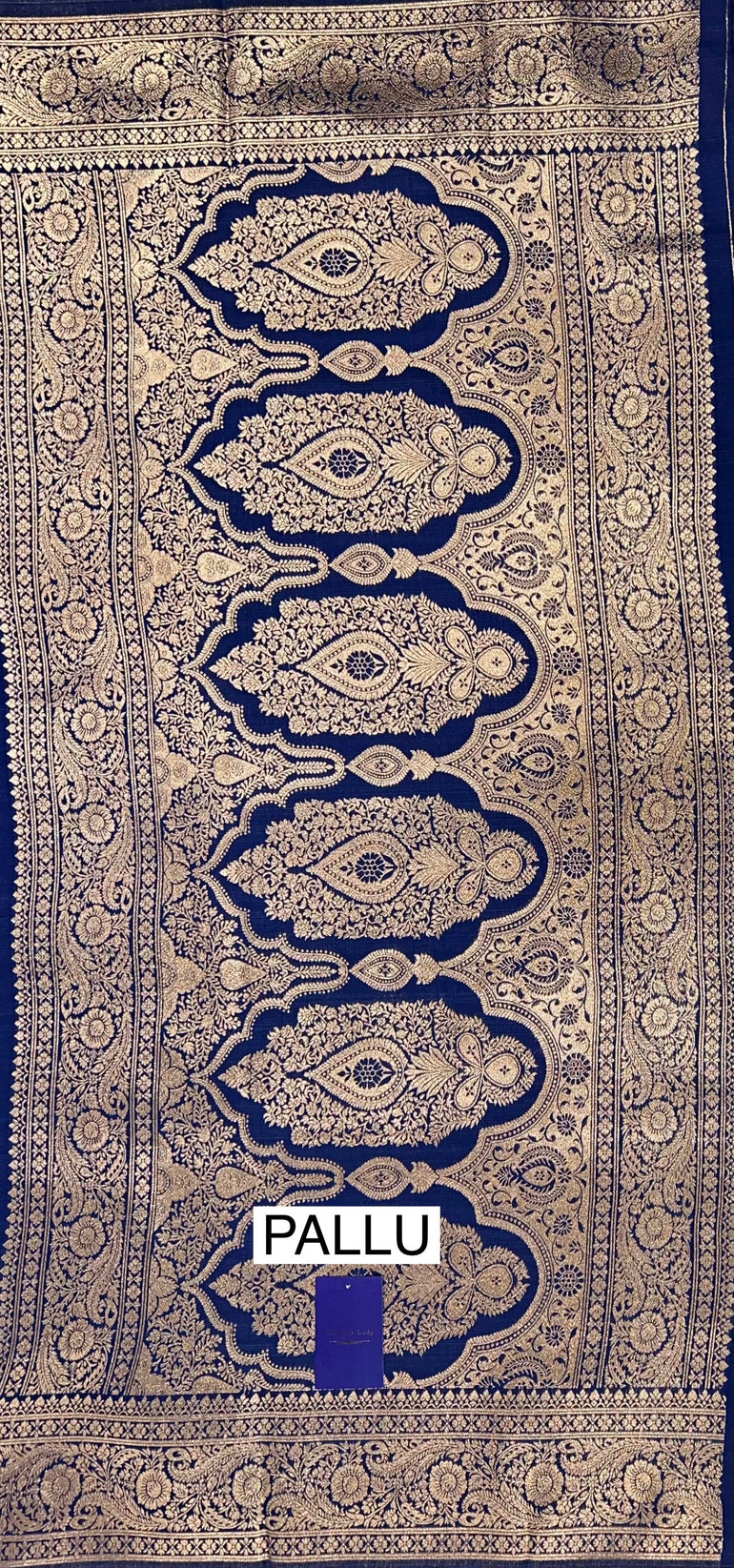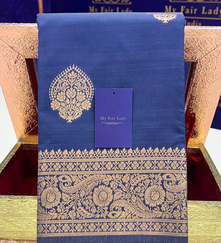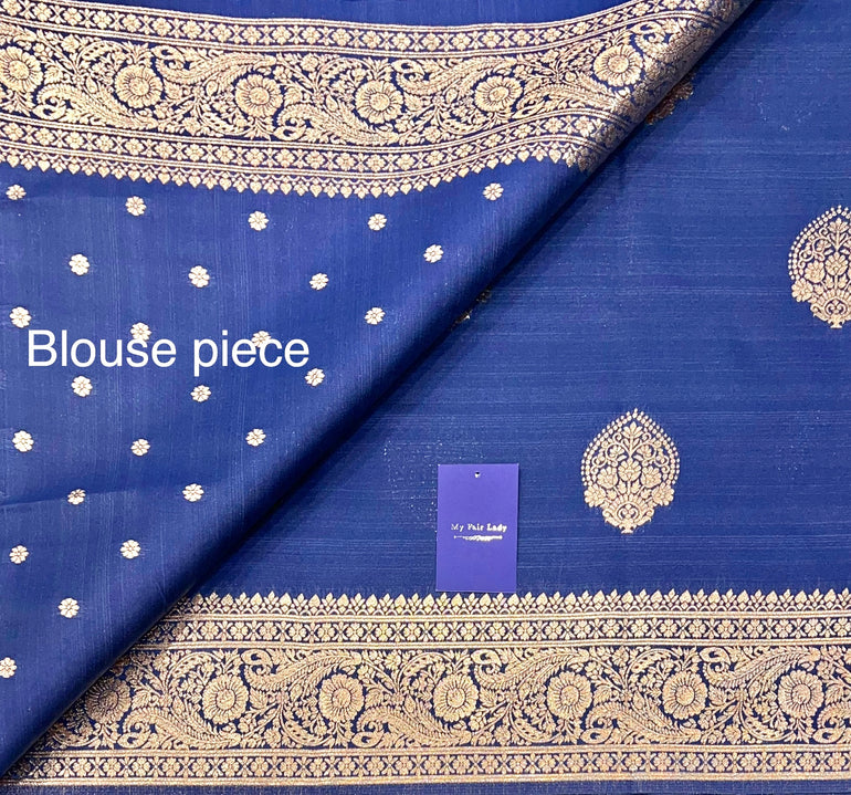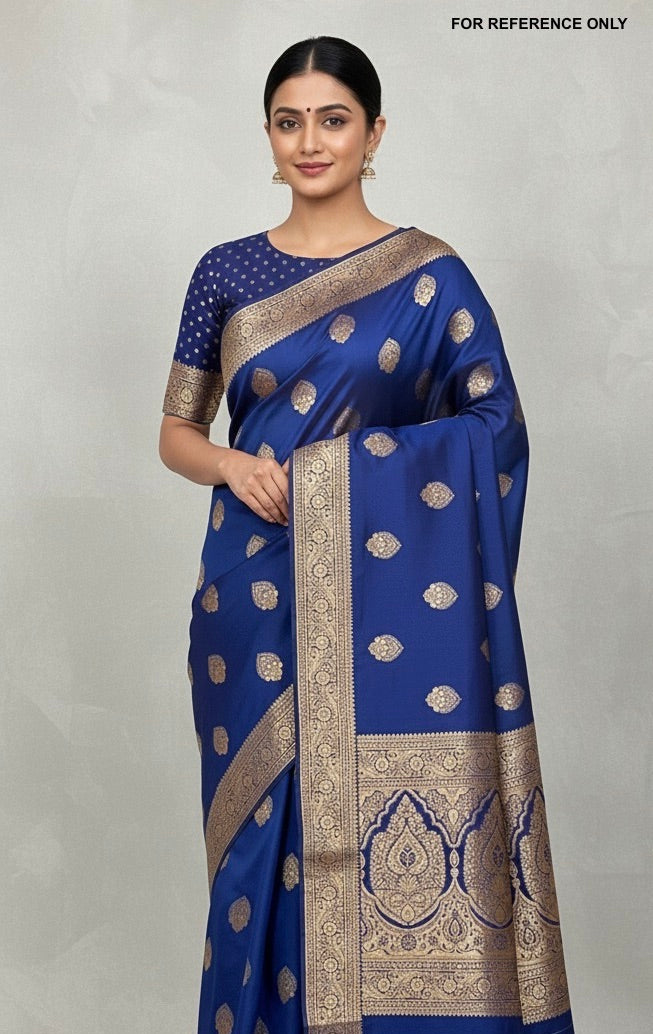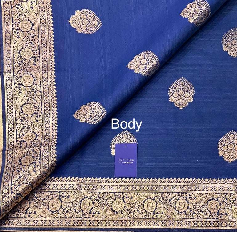 Butta Semi-Silk Saree Dark Blue Colour - [Code 1007]
