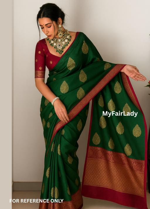 Butta Semi-Silk Saree Dark Green Colour - [Code 1009]