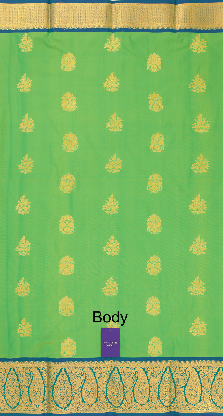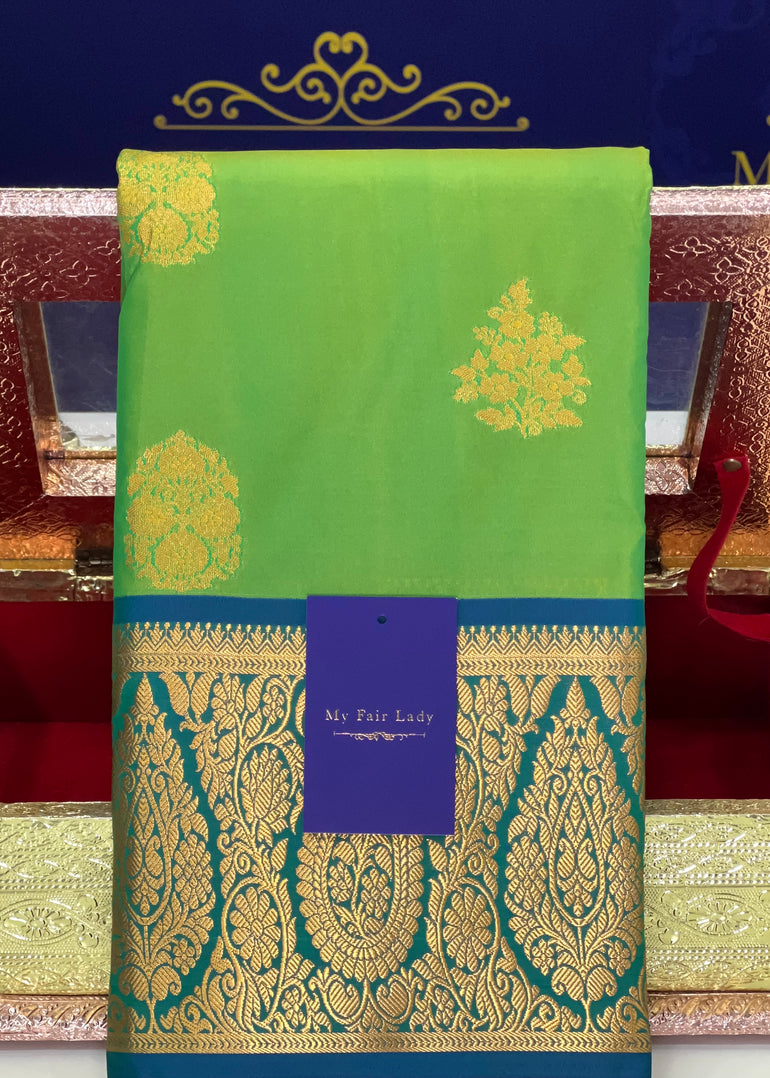Butta Semi-Silk Saree Green x Gold Colour - [Code 1042]