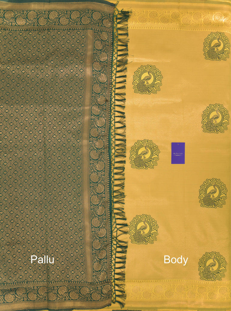 Butta Semi-Silk Saree Golden Yellow Colour - [Code 1053]