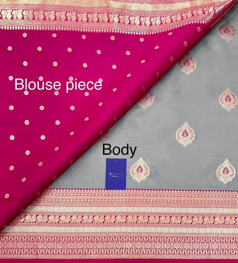 Butta Semi-Silk Saree Grey Colour - [Code 878]