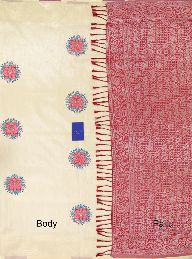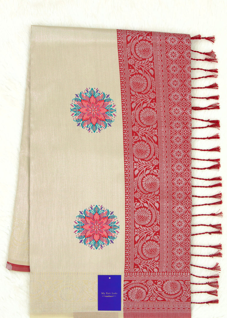 Butta Semi-Silk Saree Beige Colour - [Code 1062]