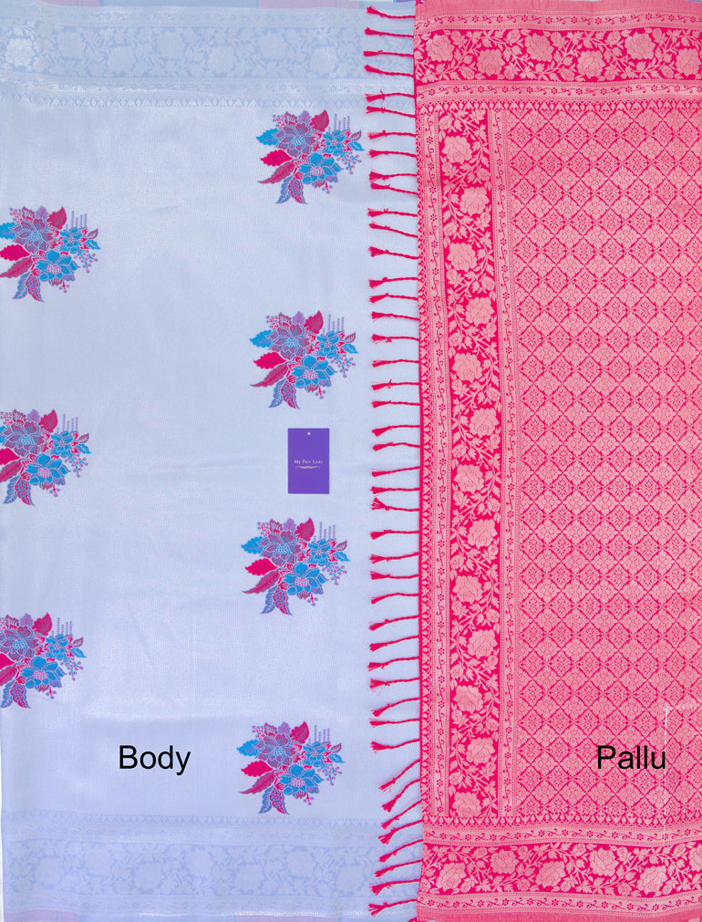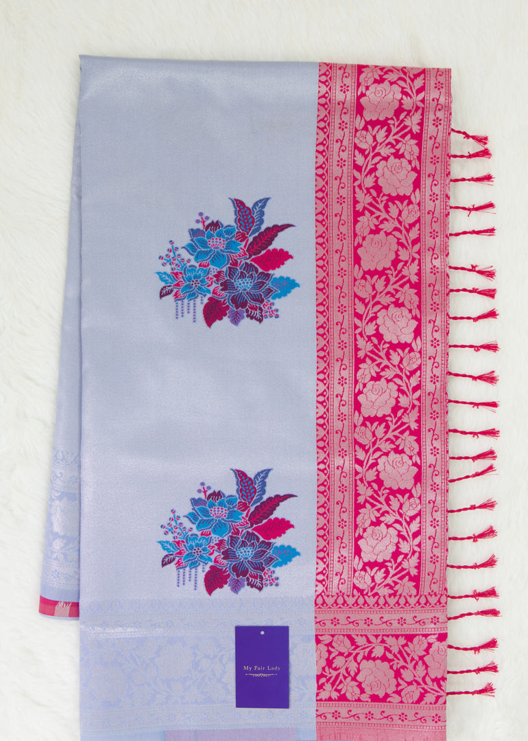 Butta Semi-Silk Saree Blue Colour - [Code 1063]
