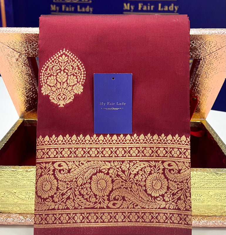 Butta Semi-Silk Saree Maroon Colour - [Code 894]