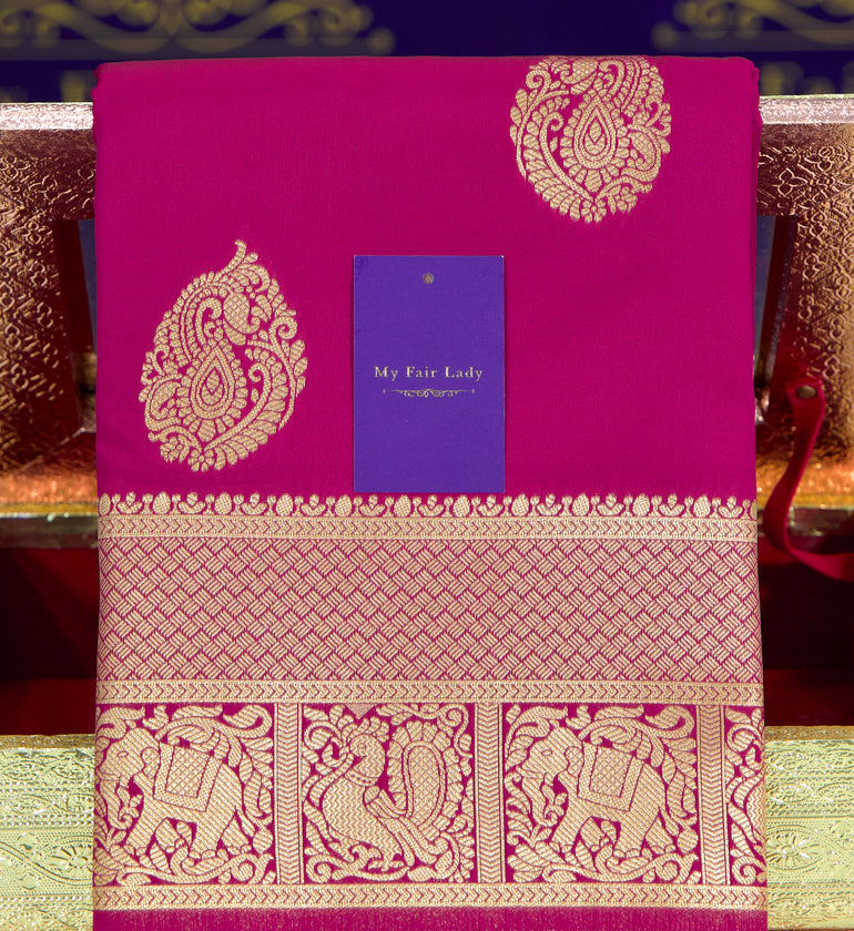 Butta Semi-Silk Saree Rani Pink Colour - [Code 1030]