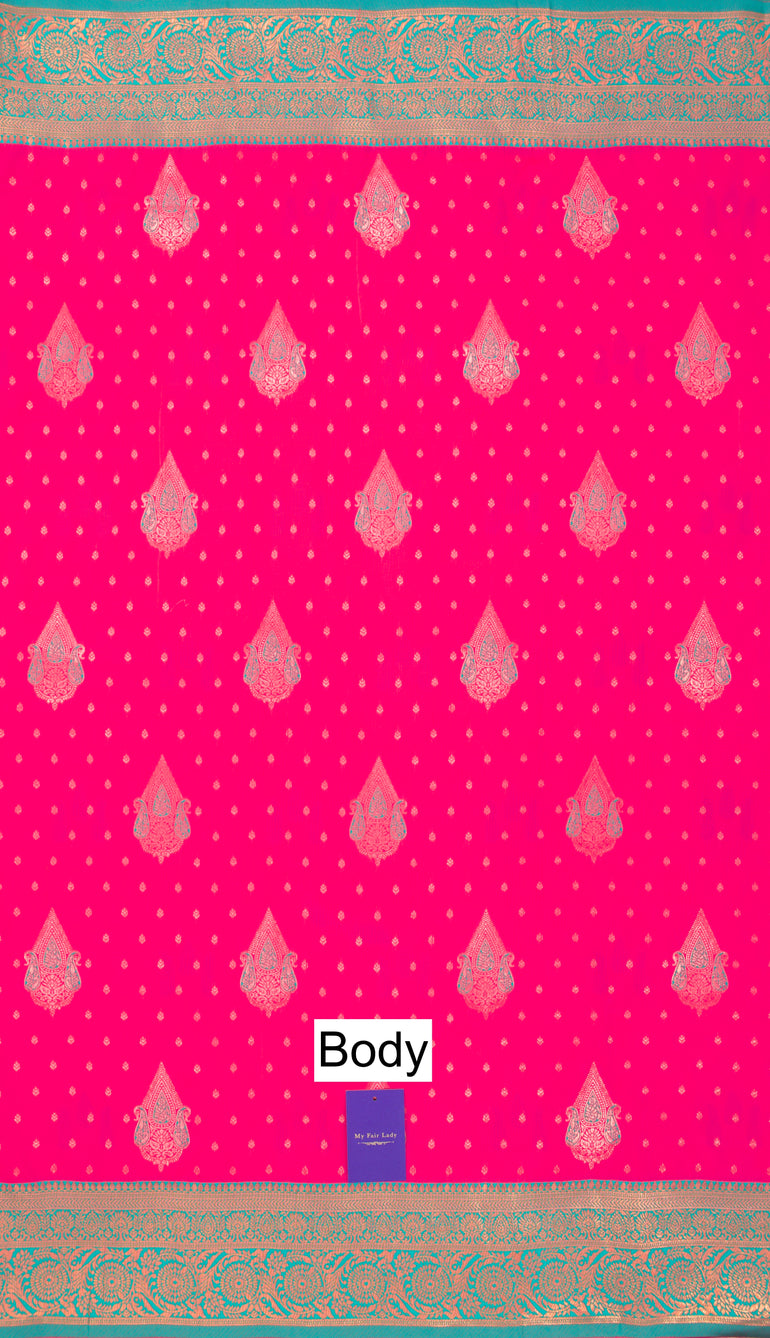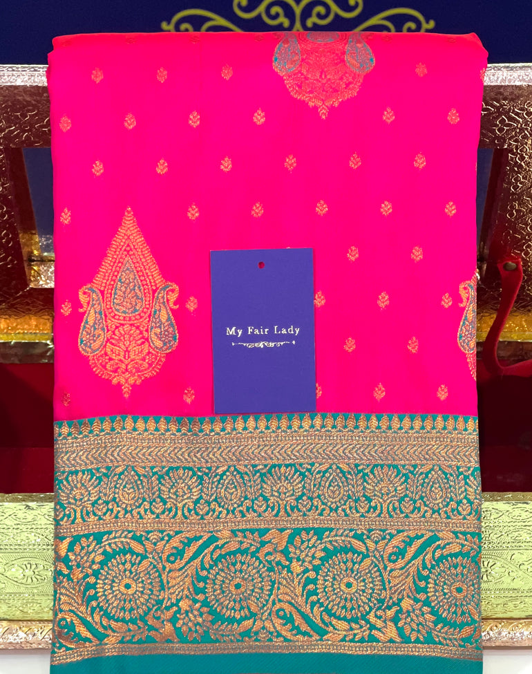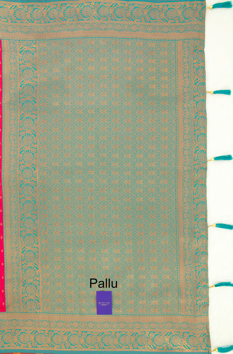 Semi-Silk Saree Bright Pink Colour - [Code 621]