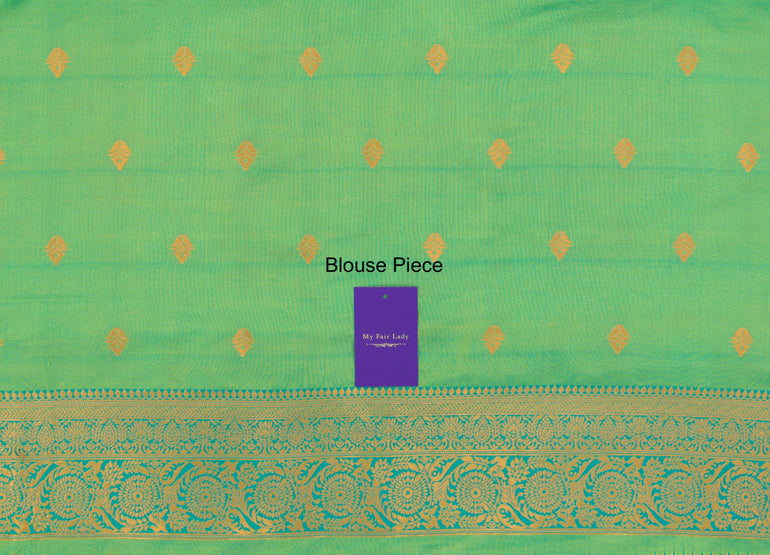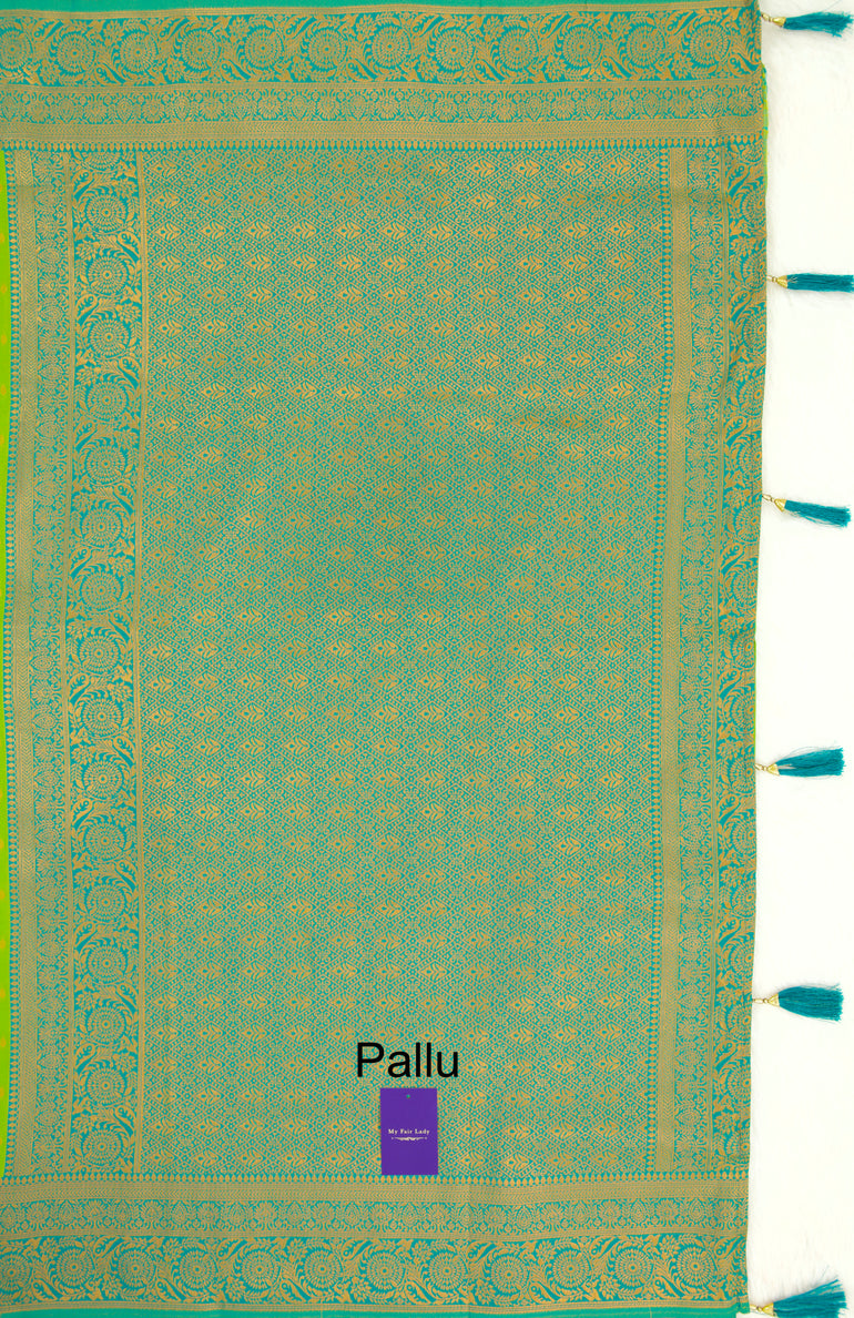 Semi-Silk Saree Lime Green Colour - [Code 621]